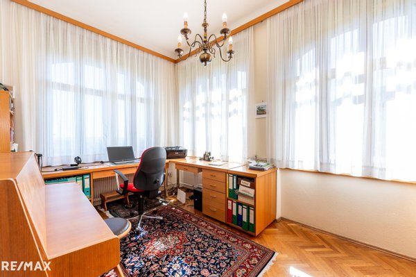 Der Ziegelmassivbau bietet großzügige hohe Räume, die ein elegantes Raumgefühl schaffen. Originale Parkettböden unterstreichen den historischen Charakter des Hauses und lassen sich wunderbar mit modernen Elementen kombinieren.