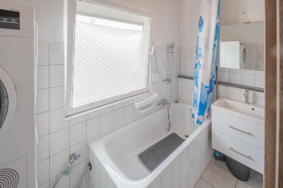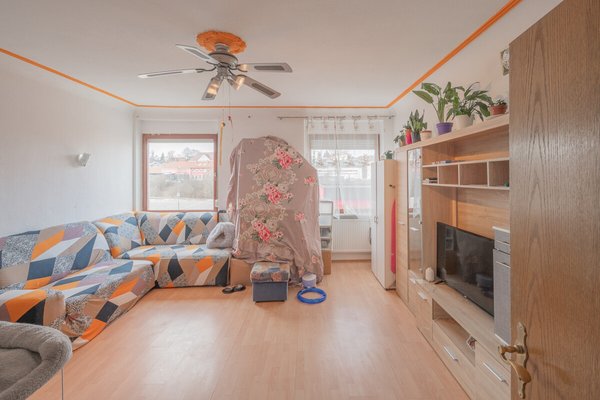 Die Böden sind mit Laminat und Teppichböden belegt und die Wände verfügen über Rauhputz. Das Wohnzimmer verfügt über einen lauschigen Erker, der für Wohnqualität sorgt. Bad und WC sind getrennt.