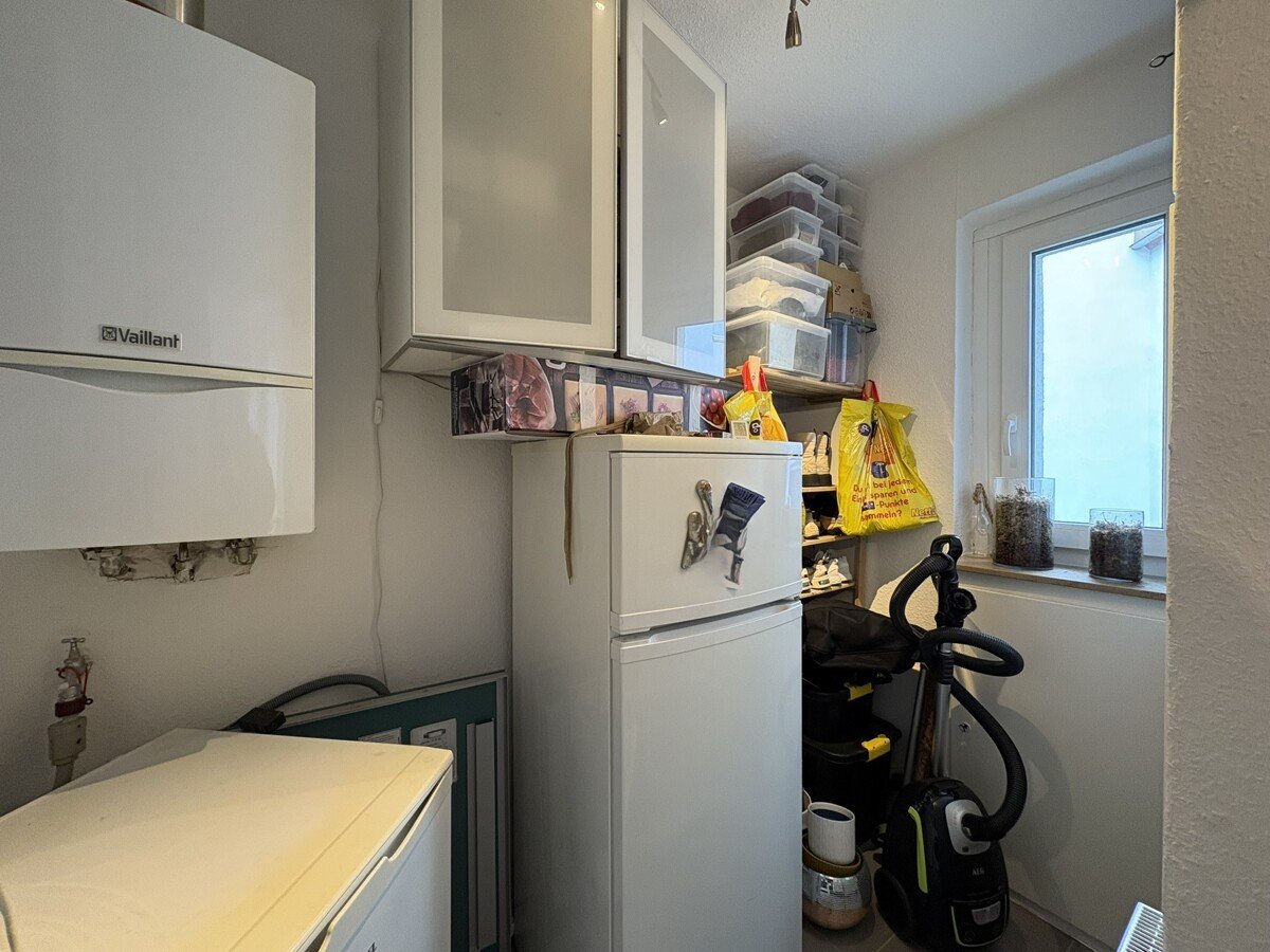 Abgerundet wird das Raumangebot durch einen Abstellraum, der an die Küche angrenzt und über Anschlüsse für eine Waschmaschine verfügt.
