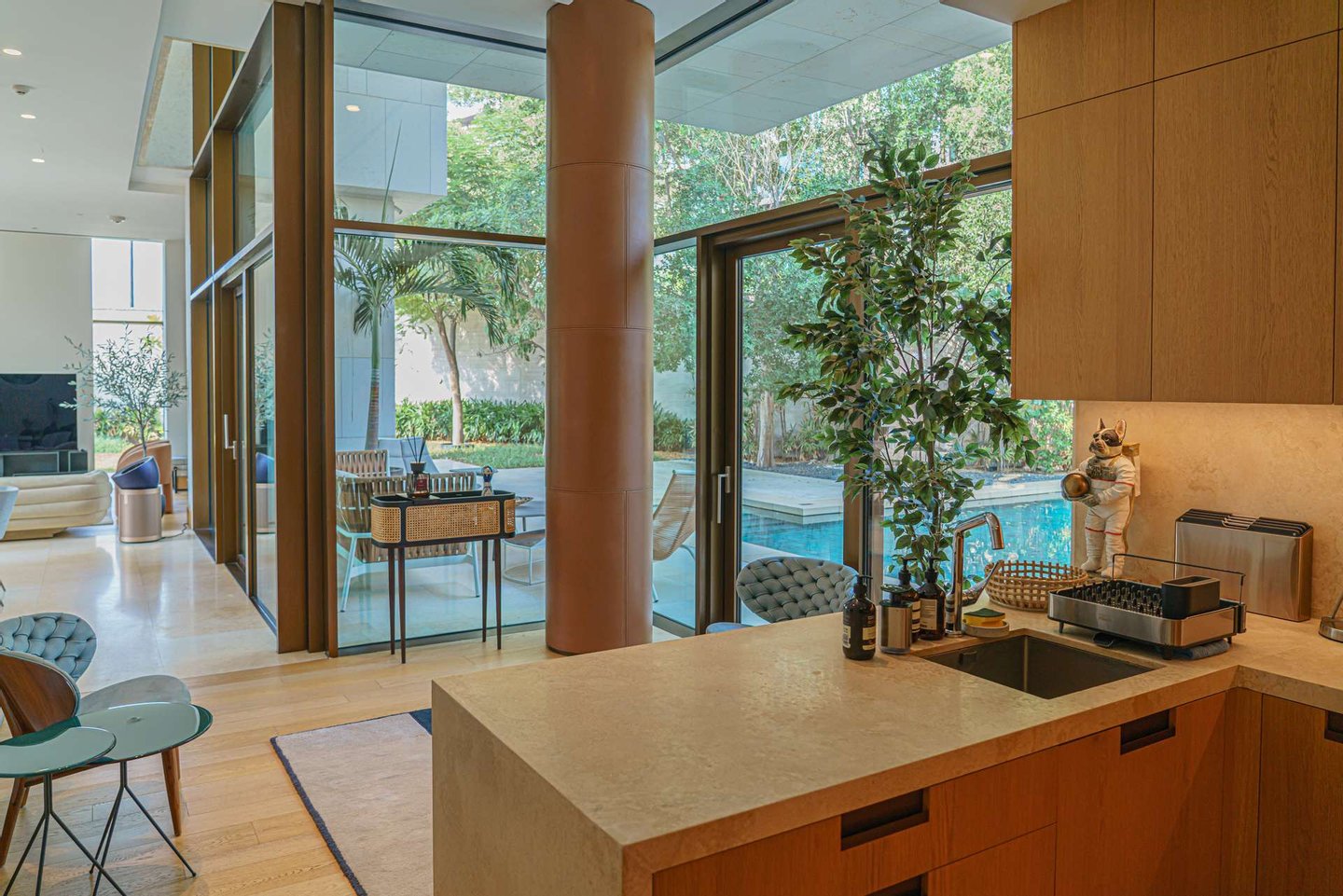 Wenn Sie diese atemberaubende Luxusvilla mit 3 Schlafzimmern betreten, werden Sie von einem geräumigen Wohnbereich mit Einbauschränken und einer zentralen Klimaanlage begrüßt, die Sie in den heißen Sommermonaten kühl hält. Der offene Grundriss geht nahtlos in die moderne Küche über, die mit hochwertigen Geräten und einer Frühstücksbar für zwangloses Essen ausgestattet ist.