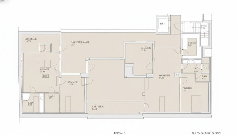 Luxuriöses Dachgeschoss – 5 Zimmer – Terrasse auf Wohnebene !