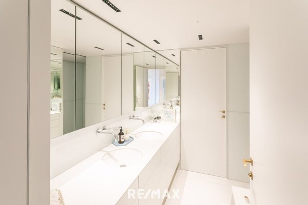 Auf der rechten Seite des Wohnbereichs befinden sich das Hauptschlafzimmer mit Bad und ein weiteres Zimmer; links zwei zusätzliche Schlafzimmer, ein weiteres Bad sowie die Küche.