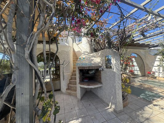 Das Haupthaus verfügt über ein Schlafzimmer, ein geräumiges Wohnzimmer von etwa 35 m², eine separate Küche, ein elegantes Badezimmer und ein Ankleidezimmer. Der Komplex wird durch drei unabhängige Wohnungen ergänzt, jede mit eigenem Eingang und privatem Außenbereich.
