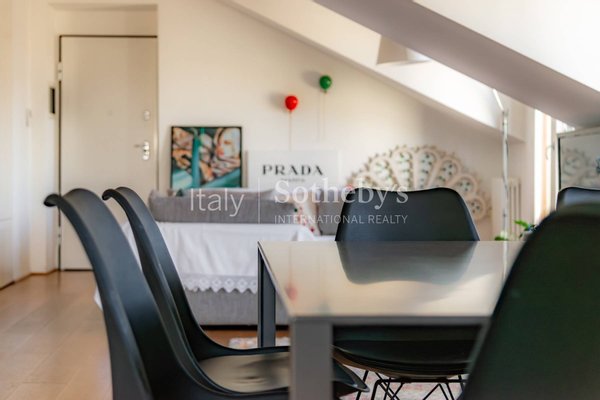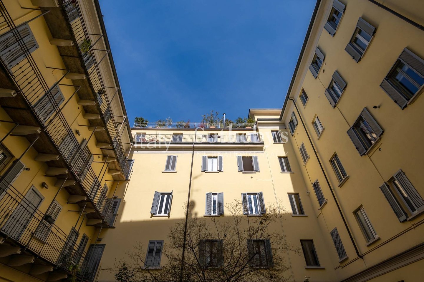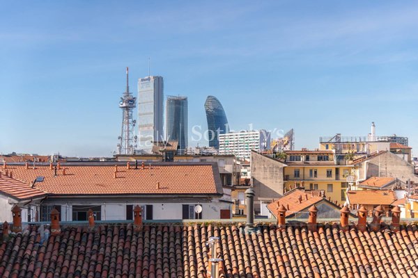 Penthouse in einer ruhigen Straße im lebendigsten Viertel der Stadt, nur wenige Schritte vom Zentrum und dem Parco Sempione entfernt, mit Blick über die Dächer und die Skyline sowie bezaubernden Sonnenuntergängen.