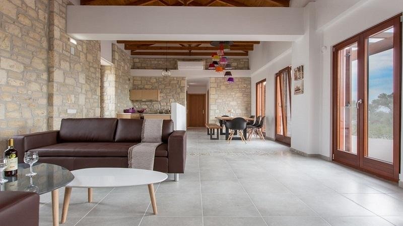 Die Hauptvilla bietet eine Wohnfläche von 141,38 m² und vereint auf durchdachte Weise traditionellen Charme mit modernem Komfort. Die mit Natursteinelementen und Holzdetails gestalteten Innenräume wirken warm und authentisch, sind aber gleichzeitig hell und geräumig. Die Villa verfügt über vier gut geschnittene Schlafzimmer und zwei Badezimmer, die sowohl für den Alltag als auch für Urlaubsaufenthalte komfortabel und funktional eingerichtet sind. Der offene Wohnbereich geht fließend in den Außenbereich über und schafft so ein harmonisches Zusammenspiel von Innen- und Außenraum.