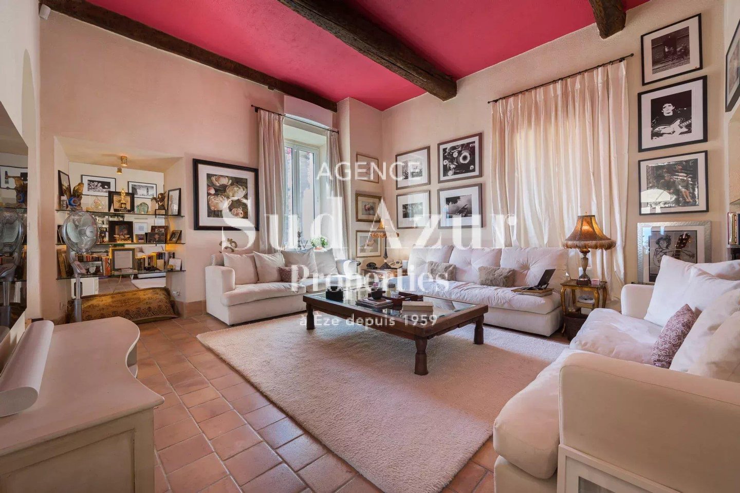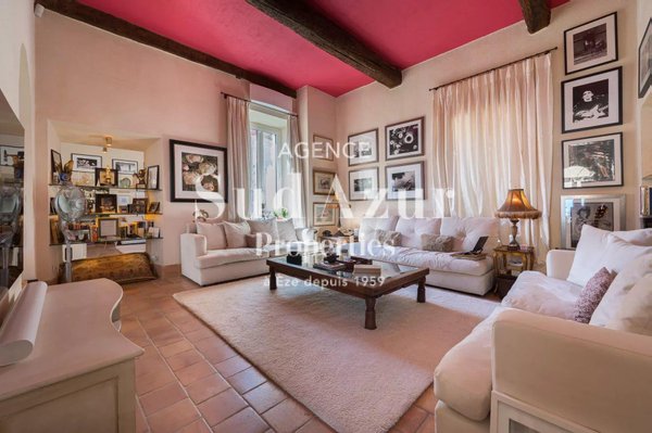 Vorstellung dieser historischen, einzigartigen Immobilie aus dem 18. Jahrhundert mit 570 m2, gelegen an der berühmten Seeuferpromenade von Èze, renoviert mit Respekt und Bewahrung des historischen venezianischen Mosaikbodens und der Fresken. Die