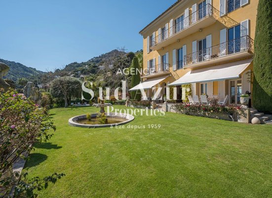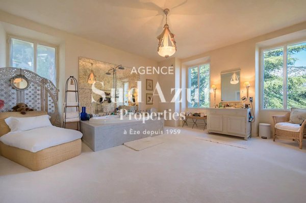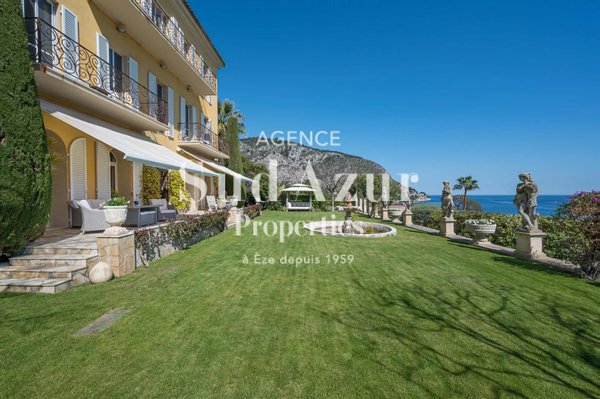 Vorstellung dieser historischen, einzigartigen Immobilie aus dem 18. Jahrhundert mit 570 m2, gelegen an der berühmten Seeuferpromenade von Èze, renoviert mit Respekt und Bewahrung des historischen venezianischen Mosaikbodens und der Fresken. Die wunderschönen, gärtnerisch gestalteten und privaten 2933 m2 großen Gärten bieten atemberaubende Ausblicke aufs Mittelmeer und befinden sich nur einen Steinwurf vom Strand entfernt. Ein eigenständiges Musik/Kunst/Freunde-Haus-Studio wurde kürzlich vollständig neu aufgebaut und bietet Privatsphäre für Sie und Ihre Gäste. Diese wunderschöne und einzigartige Immobilie umfasst einen wunderschön renovierten Pool, ein Poolhaus, 2 neu gebaute Garagen für mehrere Autos, ein anspruchsvolles Alarm- und Zutrittssystem. Die private historische Kapelle und das Gewächshaus liegen zwischen üppigen Gärten und jahrhundertealter Vegetation.