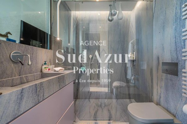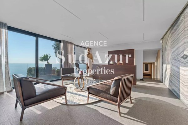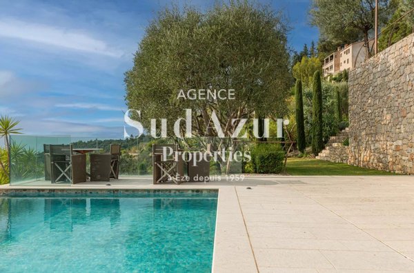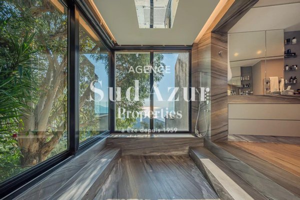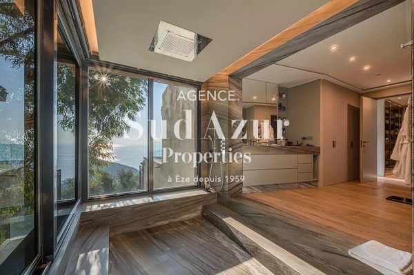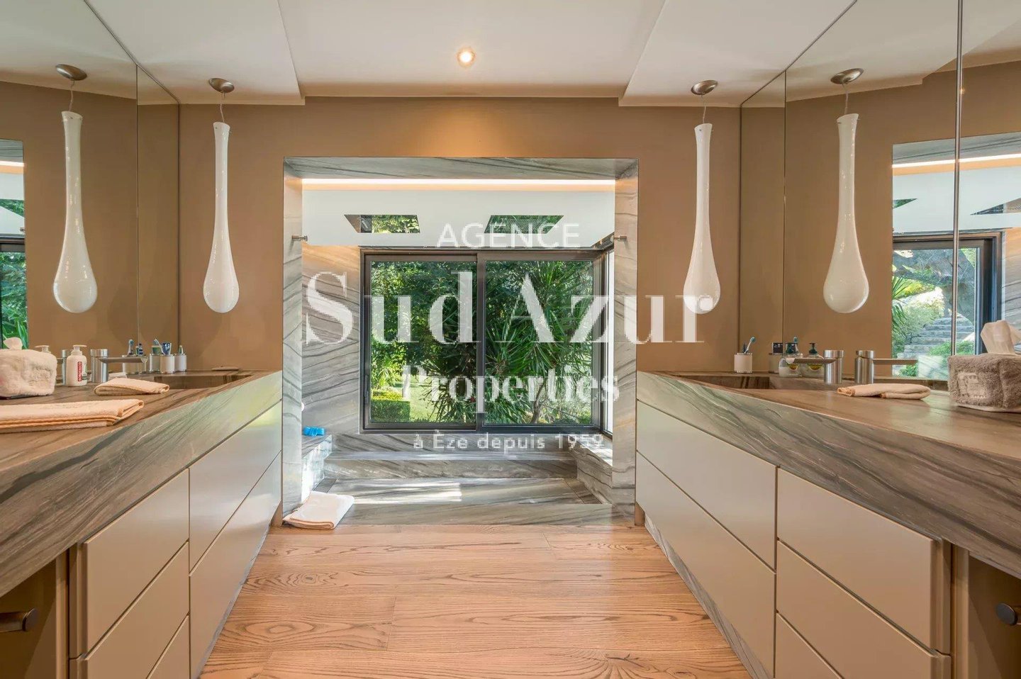 Gelegen auf den Höhen von Èze in einer ruhigen, begrünten Umgebung bietet diese Villa im zeitgenössischen Stil ca. 600 m² Wohnfläche im Herzen eines Gartenareals von fast 8.800 m², wundervoll bepflanzt mit einem Olivenhain und von Trockenmauerwerk eingefasst. Vollständig renoviert mit hochwertigsten Materialien beeindruckt die Immobilie durch elegantes Design, großzügige Räume und hochwertige Finishs. Sie umfasst ein großzügiges, lichtdurchflutetes Wohnzimmer mit Blick auf das Mittelmeer, ein großes Esszimmer und eine vollständig ausgestattete, zeitgenössische Küche, die zum Infinity-Pool führt. Das Haus verfügt außerdem über eine elegante gepflasterte Einfahrt, ein vollständig ausgestattetes Fitnessstudio und einen Innenlift, der alle Ebenen vom Garagenbereich aus bedient. Der Schlafbereich besteht aus fünf en-suite Schlafzimmern, jeweils mit Marmorbädern und privater Terrasse mit herrlichem Meerblick, sowie ein Büro, eine unabhängige Personalwohnung und zahlreiche Stauraummöglichkeiten. Die Außenanlagen bieten viele perfekt ausgerichtete Terrassen, ideal, um das außergewöhnliche Panorama und die ruhige Umgebung zu genießen. Die Ausstattung entspricht dem höchsten Standard der schönste Immobilien der Riviera: Infinity-Pool von sehr großer Größe mit spektakulärem Meerblick, abgeschlossene Garage für vier Fahrzeuge und Parkmöglichkeiten für mehr als zehn Autos, Videoüberwachung, mediterran gestalteter Garten mit Olivenhain und Trockenmauern. Die perfekte Verbindung von Eleganz, Modernität und Komfort – diese Villa ist eine seltene Gelegenheit in den Höhen von Èze, nur wenige Minuten von Monaco entfernt, mit einem außergewöhnlich großen Grundstück, sehr geräumigen Innenräumen und unvergleichlichem Lebenskomfort.