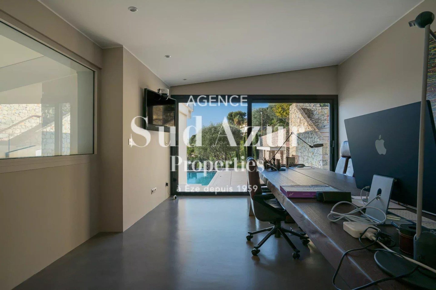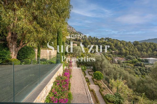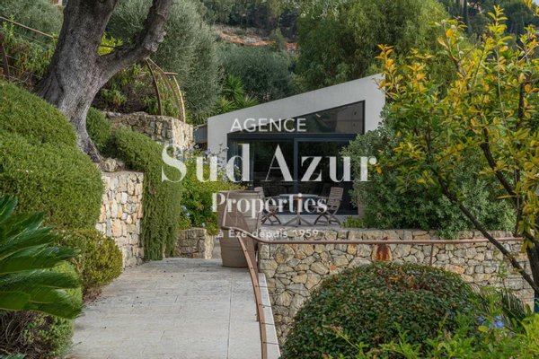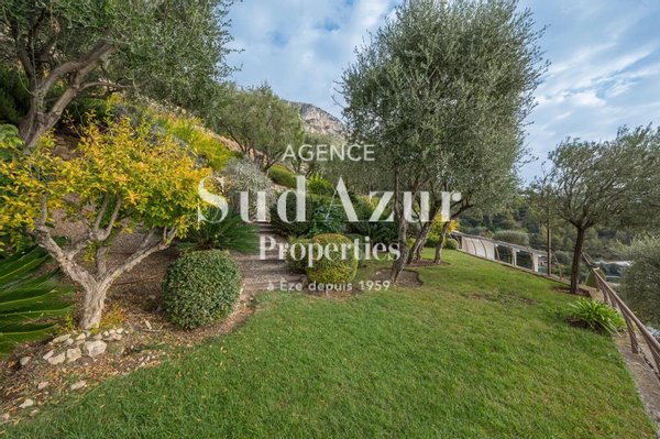 Gelegen auf den Höhen von Èze in einer ruhigen, begrünten Umgebung bietet diese Villa im zeitgenössischen Stil ca. 600 m² Wohnfläche im Herzen eines Gartenareals von fast 8.800 m², wundervoll bepflanzt mit einem Olivenhain und von Trockenmauerwerk