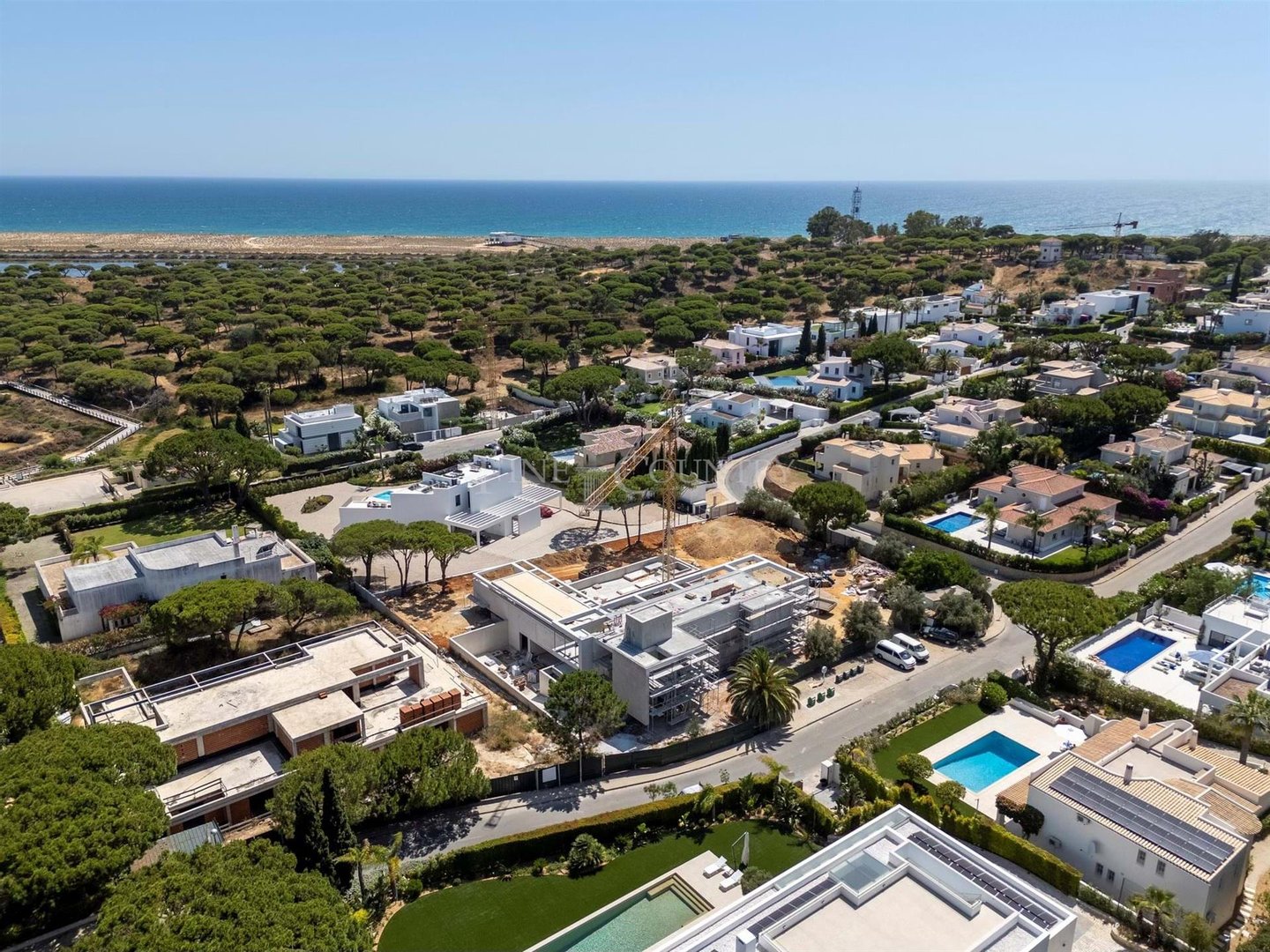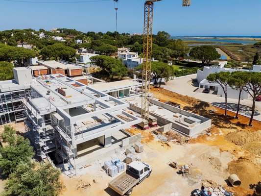Diese im Bau befindliche Villa befindet sich in der angesehenen Quinta das Salinas, nur 150 Meter von der Promenade entfernt, die Quinta do Lago mit dem Strand von Ancão verbindet. Auf einem großzügigen Grundstück von 3.341 m² gelegen, vereint dieses