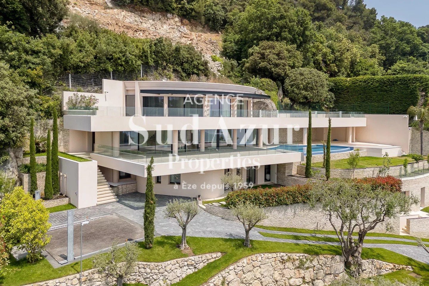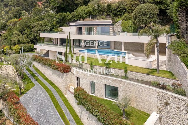 Diese zeitgenössisch gebaute Immobilie mit luxuriösen Ausstattungen bietet einen herrlichen Panoramablick auf das Meer, Cap Ferrat und die Berge. Auf ca. 350 m² Wohnfläche besteht sie aus einem großzügigen Wohnzimmer–Esszimmer mit Zugang zu einer Terrasse und einem beheizten Infinity-Pool, 3 Suiten, einem Master-Schlafzimmer mit Ankleidezimmer. Der 1640 m² große Garten ist angelegt. 2 unabhängige Suiten-Zimmer. Hochwertige Ausstattungen und Baumaterialien. Getönte Glasfronten, Klimaanlage, Videoüberwachung, Hausautomation. Aufzüge/Lastenaufzug für 2 Fahrzeuge und Außenparkplätze.