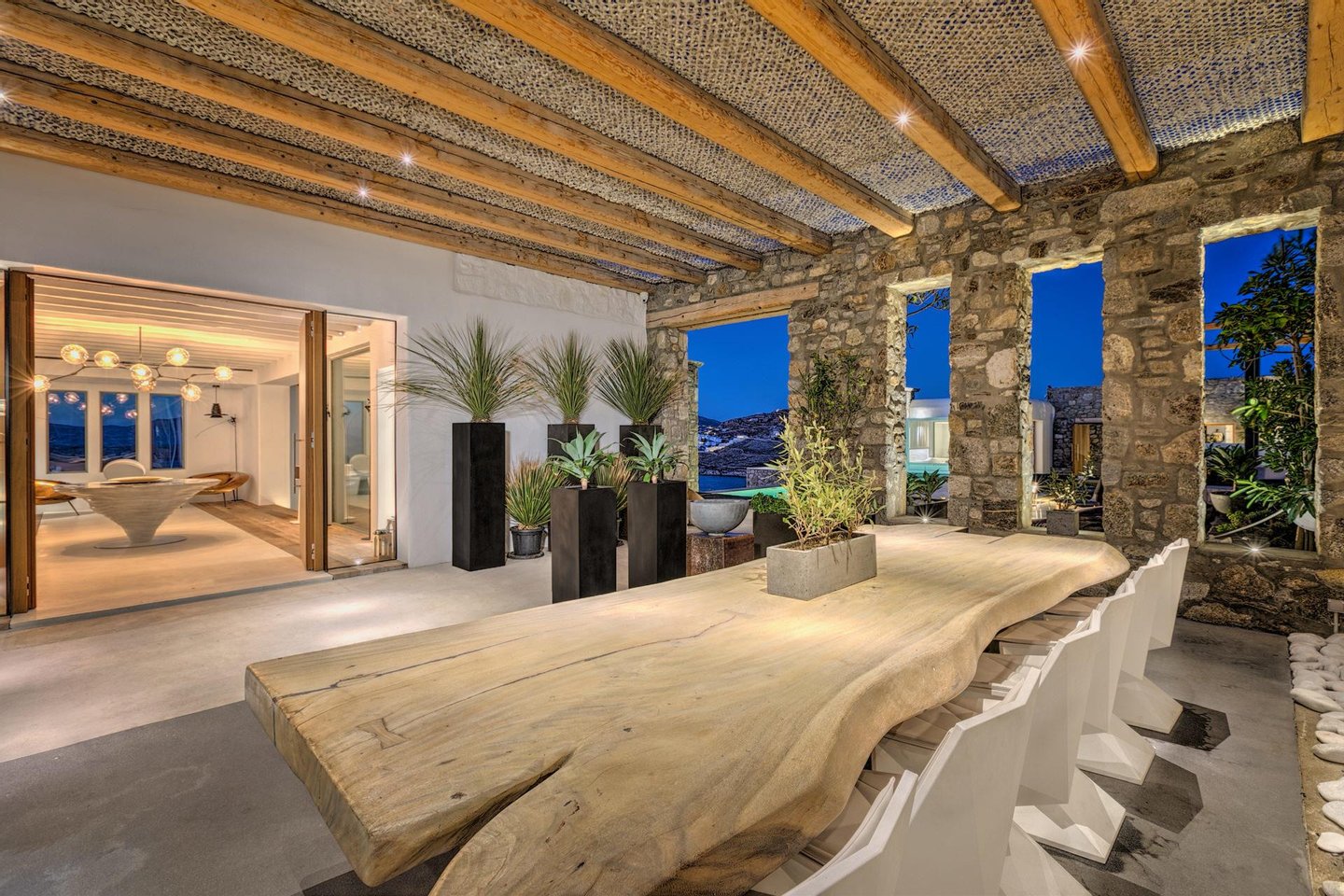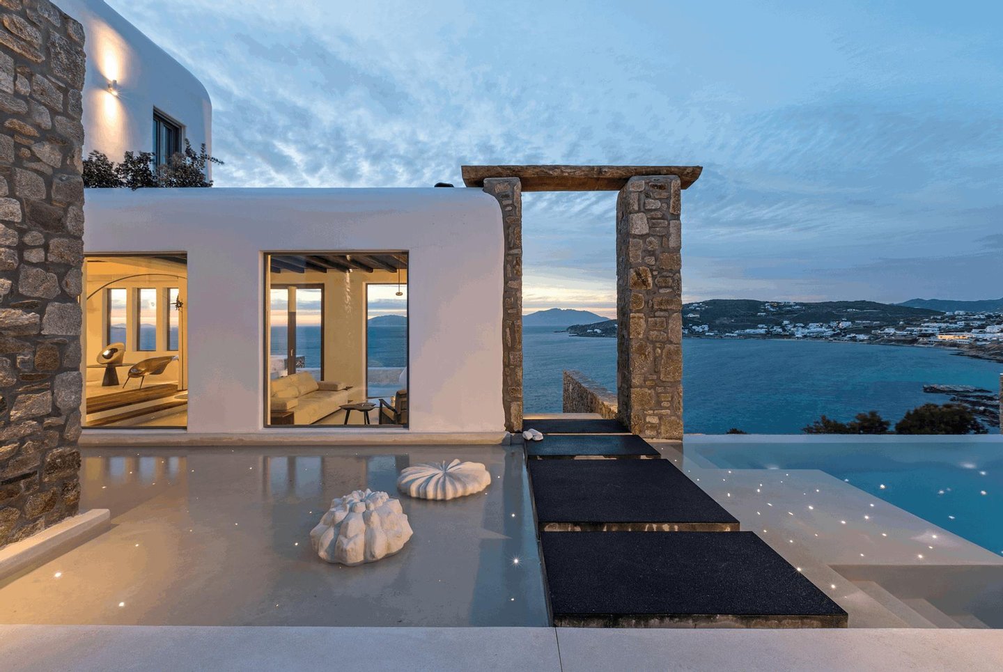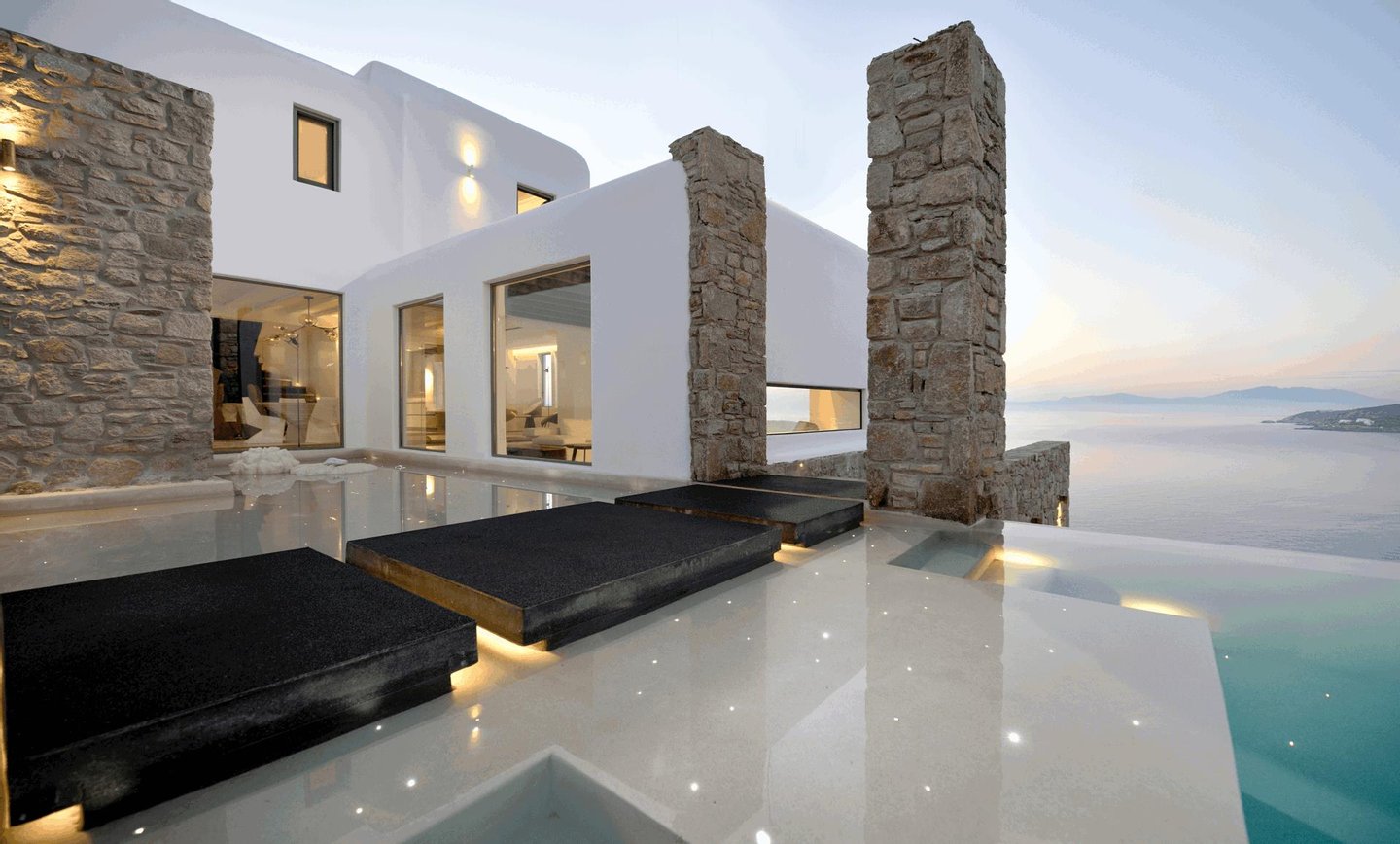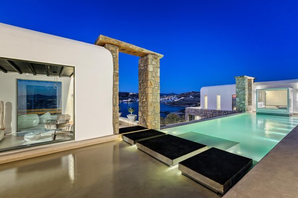Wachen Sie am Meer auf, leben Sie im Licht und erleben Sie Mykonos von Bluora aus in privater Atmosphäre. Zwischen Himmel und Meer aufgehoben, ist Bluora ein privates Refugium, in dem Mykonos seine exklusivste Seite zeigt. Entworfen, um ungestörte Sonnenuntergangsblicke und müheloses Indoor-Outdoor-Living zu erfassen, verbindet dieses bemerkenswerte Anwesen refined Kykladische Architektur mit zeitgenössischem Luxus und schafft eine Atmosphäre von Ruhe, Privatsphäre und unaufdringlicher Raffinesse. Über mehrere unabhängige Residenzen, die um einen spektakulären beheizten Infinity-Pool angeordnet sind, bietet Bluora außergewöhnlichen Raum und Komfort für große Gruppen, während Privatsphäre in jeder Ecke gewahrt bleibt. Elegante Wohnbereiche mit Kaminen und direktem Zugang zu weiten Terrassen laden zur Entspannung ein, während voll ausgestattete Küchen, Außenessbereiche und durchdacht gestaltete Lounge-Bereiche den perfekten Rahmen für Entertainment schaffen. Jede der zehn Schlafzimmer ist als private Suite mit eigenem Bad, Meerblick und modernen Annehmlichkeiten ausgestattet, darunter ausgewählte Zimmer mit privater Terrasse, beheizten Jacuzzis und exklusivem Poolzugang. Weitere Merkmale wie privates Fitnessstudio, Outdoor-Küche und Bar sowie mehrere unabhängige Gästebereiche erhöhen das Erlebnis und machen Bluora ideal für Familien, Retreats oder exklusive Zusammenkünfte.