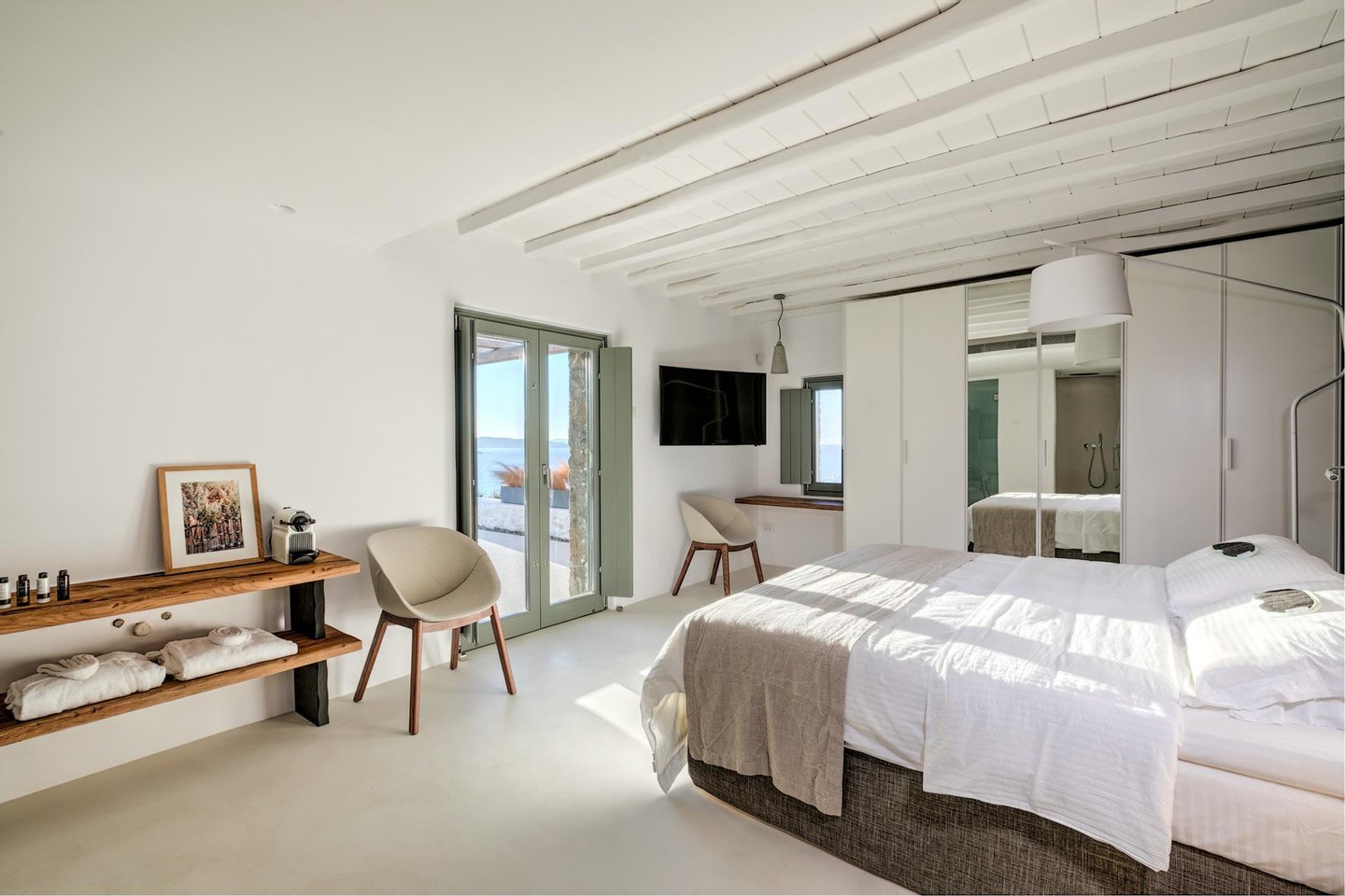 Gelegen in Aleomandra, einer der prestigeträchtigsten und begehrtesten Gegenden von Mykonos, bietet Bluora die perfekte Balance zwischen Privatsphäre und Zugänglichkeit. Nur eine kurze 4–6-minütige Fahrt von Mykonos-Stadt entfernt, können Gäste die renommierten Restaurants, Boutiquen und das Nachtleben der Insel bequem erreichen und dennoch die Ruhe einer abgelegenen Küstenlage genießen. Aleomandra ist bekannt für ungehinderte Sonnenuntergangsblicke, kristallklares Wasser und die Nähe zu ikonischen Stränden wie Ornos Beach und Agios Ioannis Beach, was Bluora zu einer idealen Basis macht, um das Beste von Mykonos zu erleben.