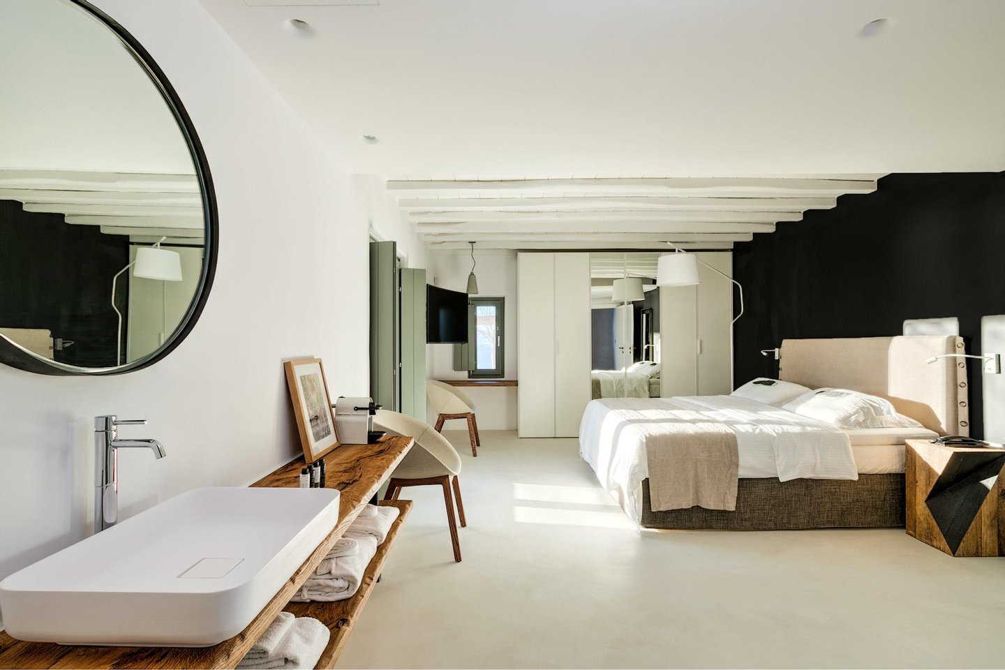 Wachen Sie am Meer auf, leben Sie im Licht und erleben Sie Mykonos von Bluora aus in privater Atmosphäre. Zwischen Himmel und Meer aufgehoben, ist Bluora ein privates Refugium, in dem Mykonos seine exklusivste Seite zeigt. Entworfen, um ungestörte