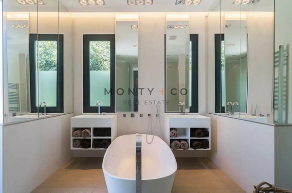 Der 1551 m² große, gestaltete Garten mit mediterranen Esstenzen und einem großen Spiegelpool schafft eine Wohnumgebung, die so beruhigend wie elegant ist. Und wenn Sie Technik lieben, hat diese Villa alles: Hausautomation, hochwertige Audiosysteme innen und außen und vieles mehr – alles in einer atemberaubenden Lage, mit einer Garage und einer vollständig möblierten Villa, bereit, Sie willkommen zu heißen.