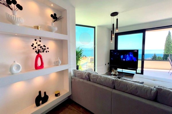 Neubau 2023, 151 m² Wohnfläche, drei En-Suite-Schlafzimmer und Panorama-Meerblick aus jedem Raum. Zwei Balkone, Pool, hochwertige Ausstattung und nur wenige Schritte zum Meer schaffen eine überzeugende Gesamtqualität.