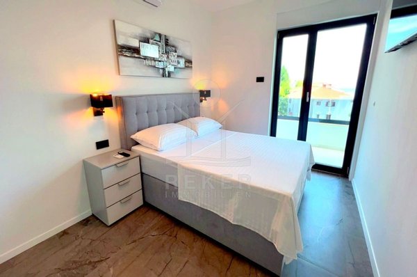 In ruhiger, gefragter Lage nahe Opatija erwartet Sie diese exklusive Neubauwohnung aus dem Jahr 2023. Zum Meer, zum Strand und zum Yachthafen ACI gehen Sie nur 300 Meter. Auch Busbahnhof, Einkaufsmöglichkeiten, Post und weitere Einrichtungen