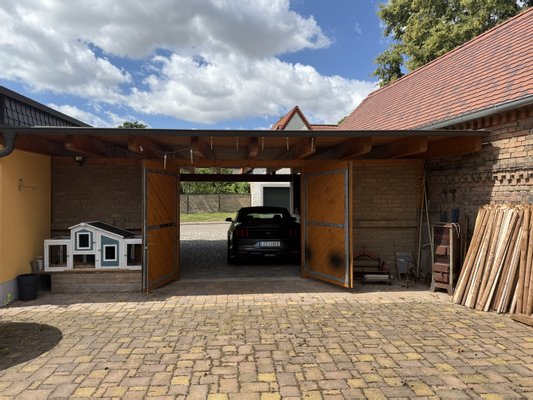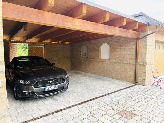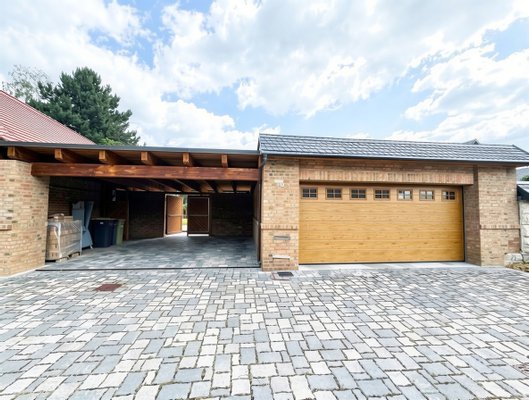 Die bestehende Garagenanlage kann weiter genutzt oder im Rahmen einer Neubebauung integriert werden.