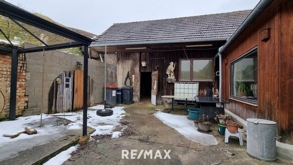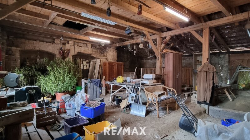 Das Grundstück ist groß und bietet vielfältige Nutzungsmöglichkeiten. Neben dem Innenhof mit Schuppen, der zur Lagerung von Geräten genutzt werden kann, gibt es ausreichend Fläche für Garten- oder Freiflächen.