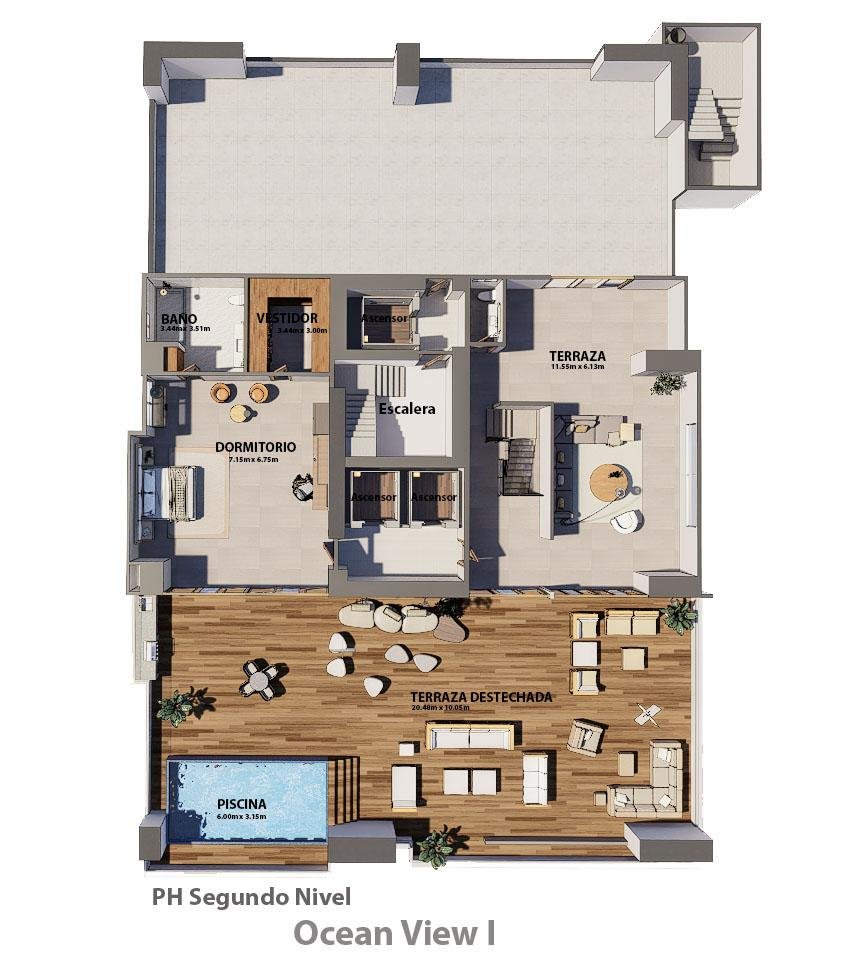 - Level 36: Erste Ebene des Penthouses.