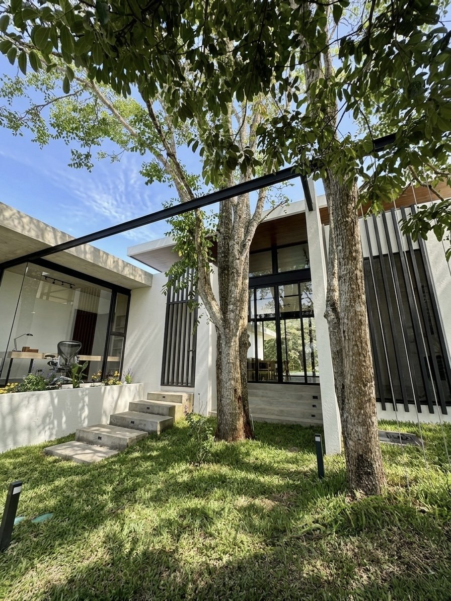 Willkommen in Casa Jardín, einem zeitgenössischen eingeschossigen Wohnhaus aus dem Jahr 2026, das rund um Grün, Licht und nahtloses Leben zwischen Innen- und Außenbereich gestaltet ist.