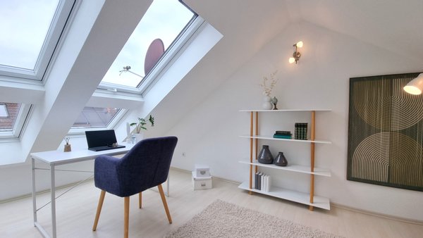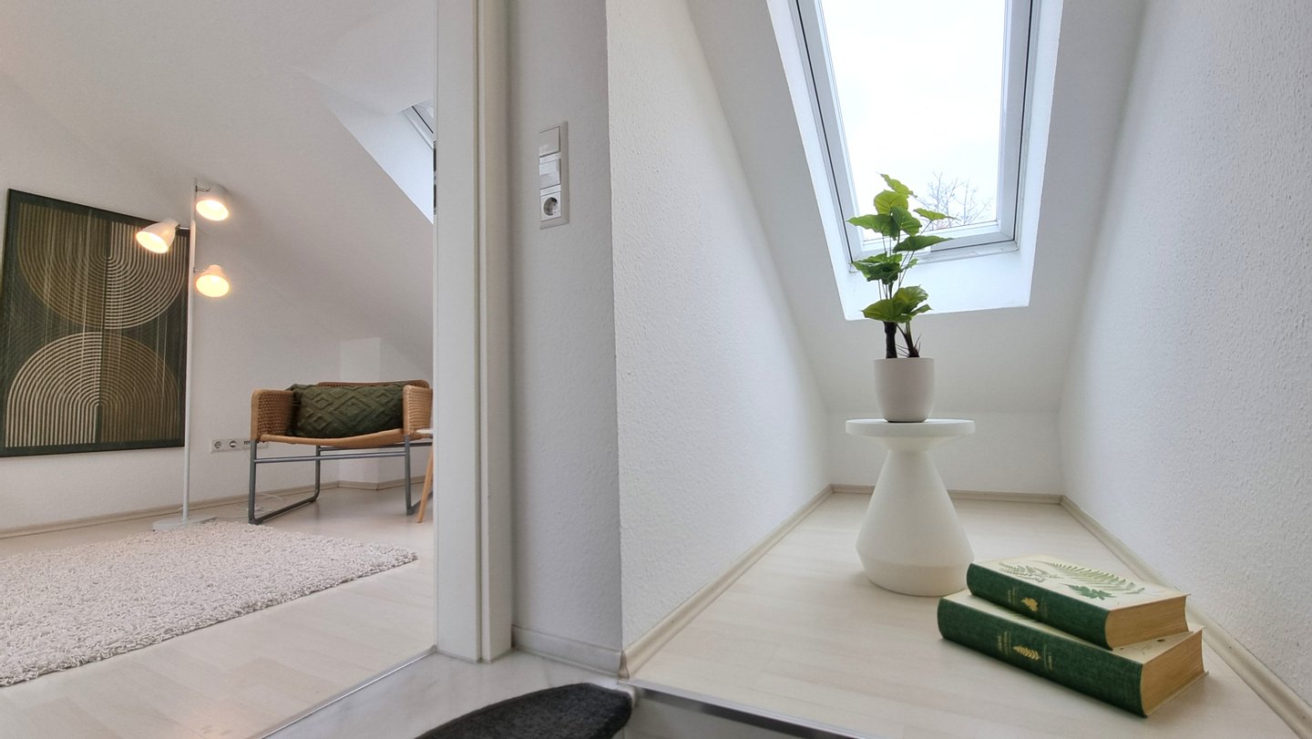 Ein echtes Plus ist das ausgebaute Dachgeschoss – ein ruhiger Rückzugsort, ideal als Gästezimmer oder Arbeitsbereich.
