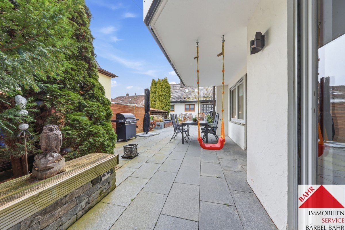 Ein besonderes Highlight ist die großzügige Terrasse mit eigenem Gartenanteil. Hier genießen Sie entspannte Stunden im Freien, Platz zum Spielen, Gärtnern oder einfach zum Abschalten im Grünen – ein echtes Plus an Lebensqualität.