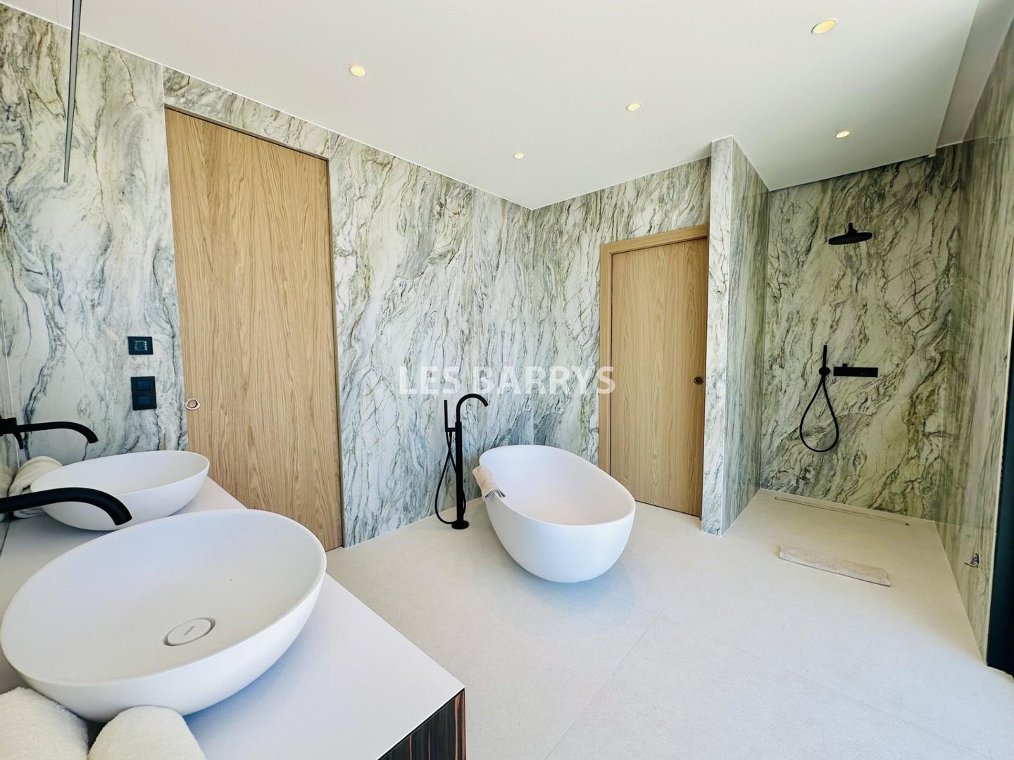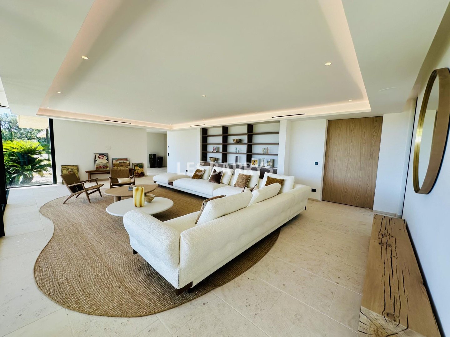 Auf einem Grundstück von 6.600 m² gelegen, profitiert die Liegenschaft von einer strategischen Lage: unmittelbar nahe dem Dorf Ramatuelle, schnelle Anbindung an Saint-Tropez, zu den Stränden von Pampelonne und La Foux, was eine mühelose Anfahrt zur Autobahn ermöglicht – auch in der Hochsaison. Die Villa, kürzlich fertiggestellt, umfasst ca. 510 m² über drei Ebenen. Die zeitgenössische Architektur setzt auf klare Linien, großzügige Volumen und eine natürliche Verbindung zwischen Innen- und Außenbereichen. Die Aussicht ist frei, mit einer dezenten Meerperspektive Richtung Pampelonne. Sie umfasst sechs Suiten, darunter eine Master-Suite von 57 m², einen großen Empfangsbereich, eine hochspezialisierte Küche sowie ein Annex-Ensemble mit Hauswirtschaftsraum und Garage für vier Fahrzeuge. Bereiche für Wellness und Freizeit integrieren Weinkeller, Fitnessraum, Hammam, Sauna und TV-Salon. Draußen sorgen ein 16 x 5 Meter Pool und ein Poolhaus dafür, dass sich die Lebensräume in einer strukturierten Gartenlandschaft fortsetzen. Eine vollendete Liegenschaft, die Zugänglichkeit, Diskretion und hohen Ausstattungsstandard vereint.