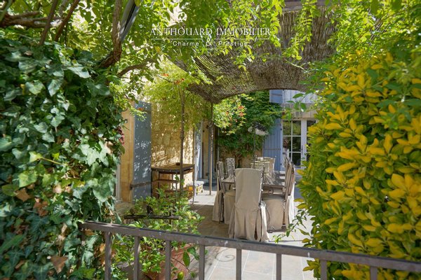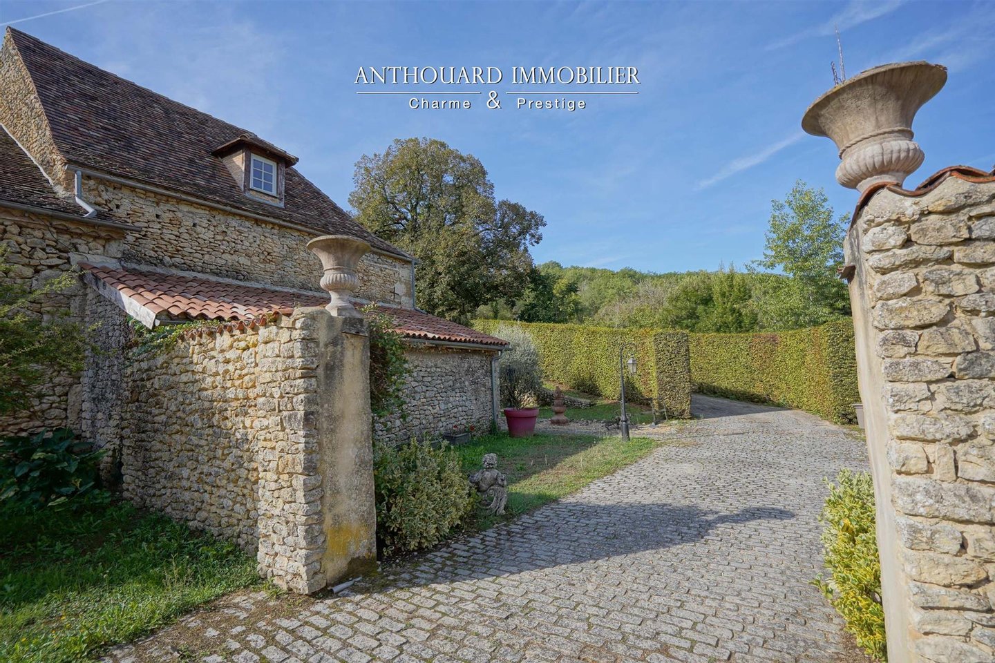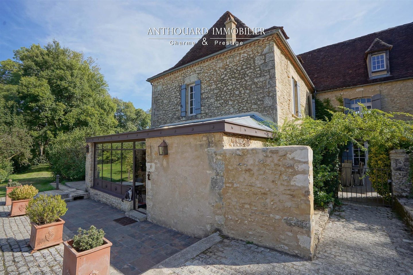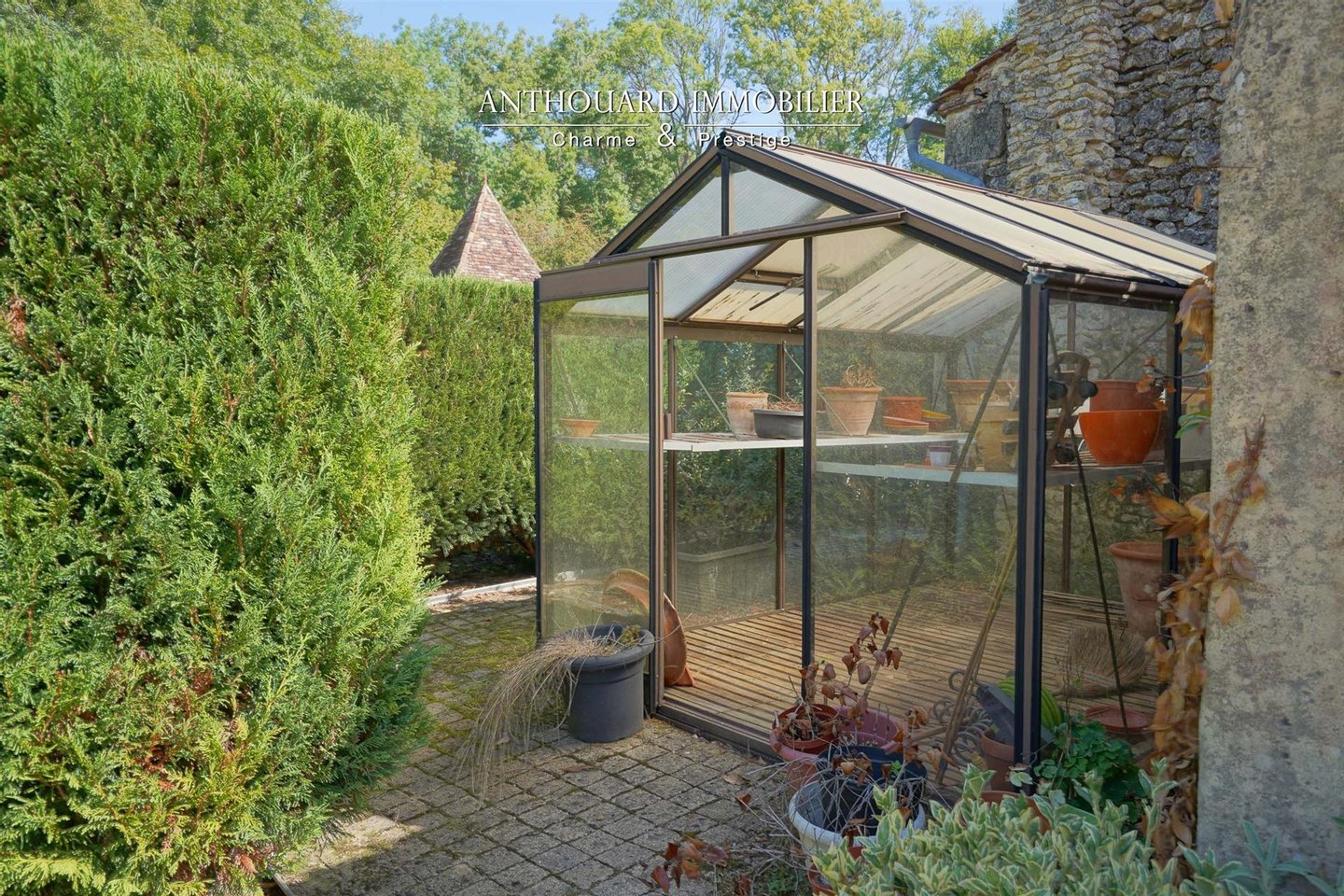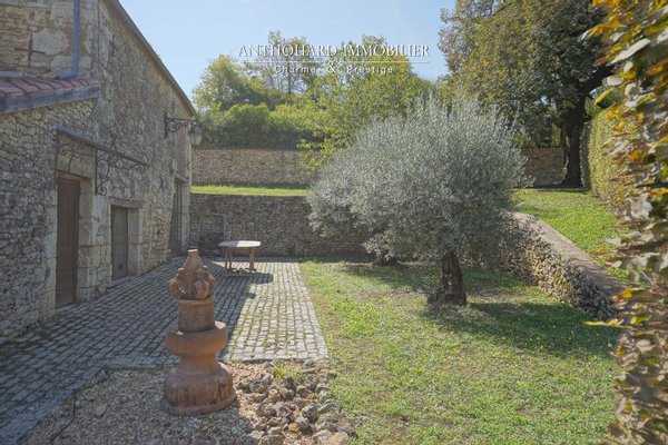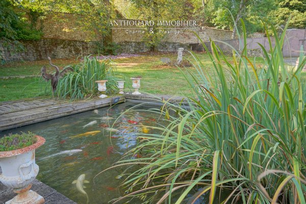 Auf 2 Hektar bewaldetem und angelegtem Park, der von einem Bach begrenzt wird. Teich, gespeist von einer Quelle. Brunnen und Wasserbecken voller Fische.