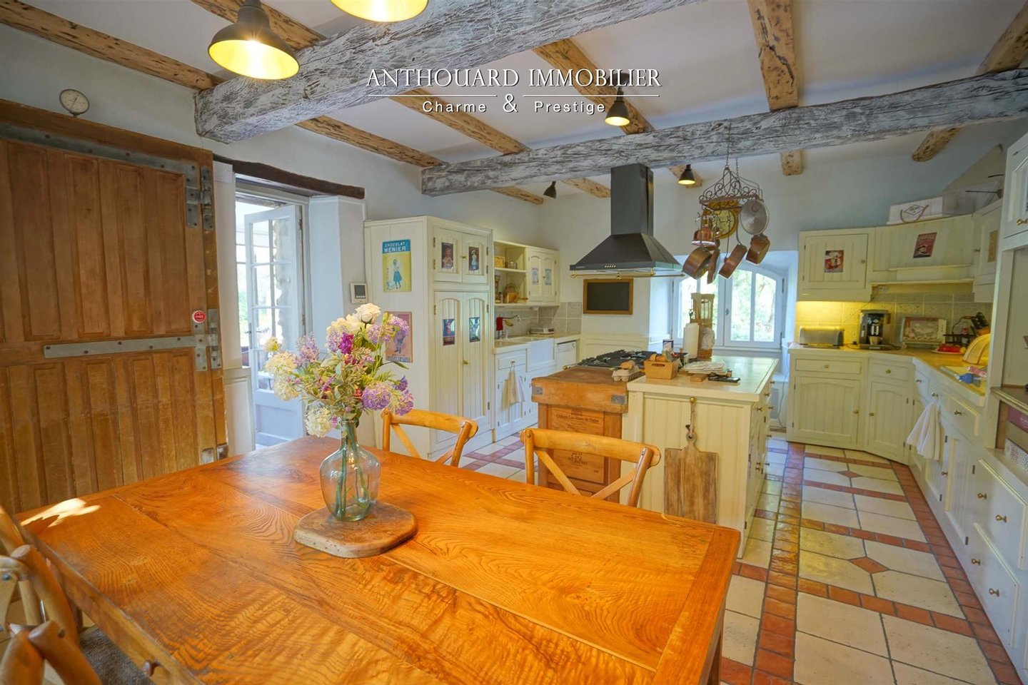 Ausgestattete Küche (Lacanche-Herd), Weinkeller und Waschküche.
