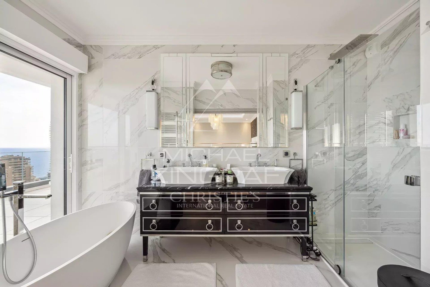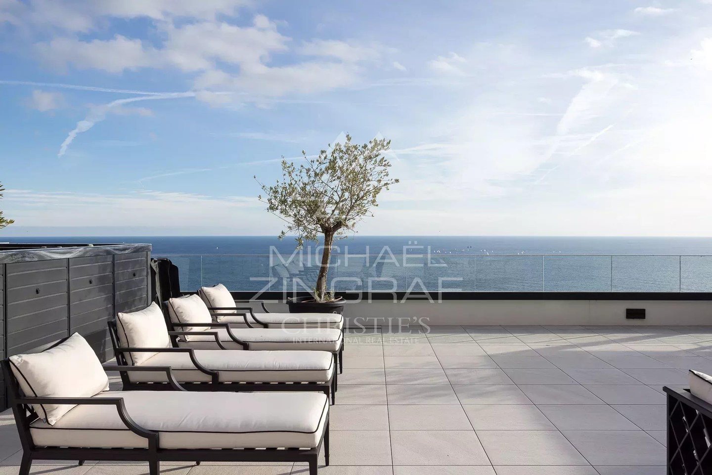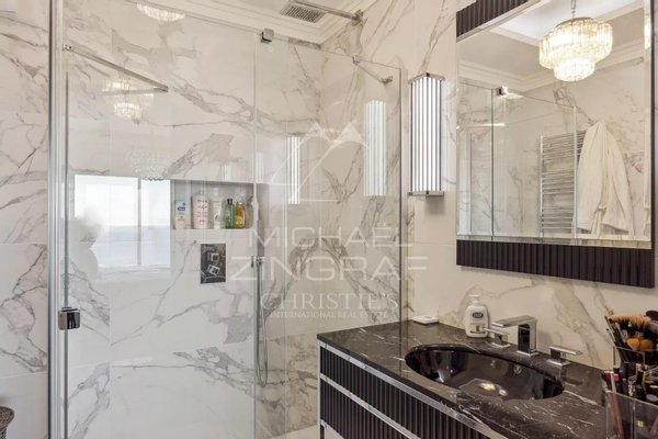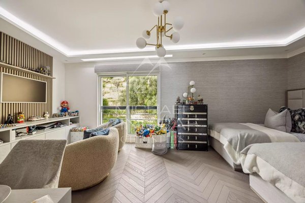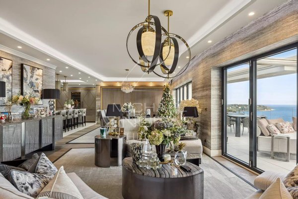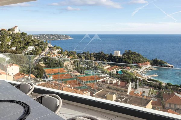 Diese ca. 209 m² große, herrliche Wohnung verfügt über ein Dachsolarium von 320 m² mit Garten und sehr großer Jacuzzi, einen hellen Wohn- und Empfangsbereich sowie ein Salon, der auf eine große Terrasse mit außergewöhnlicher Sicht auf das Meer und Monaco zugreift, und eine vollständig eingerichtete und geschmackvoll ausgestattete Küche. Der Schlafbereich umfasst drei Schlafzimmer, von denen zwei zur Terrasse hinausgehen, jeweils mit eigenem Bad/Dusche.