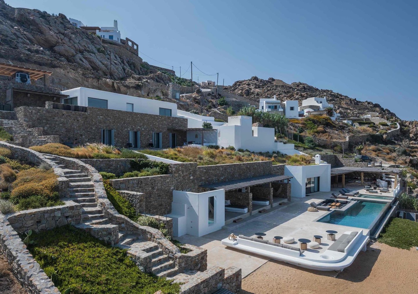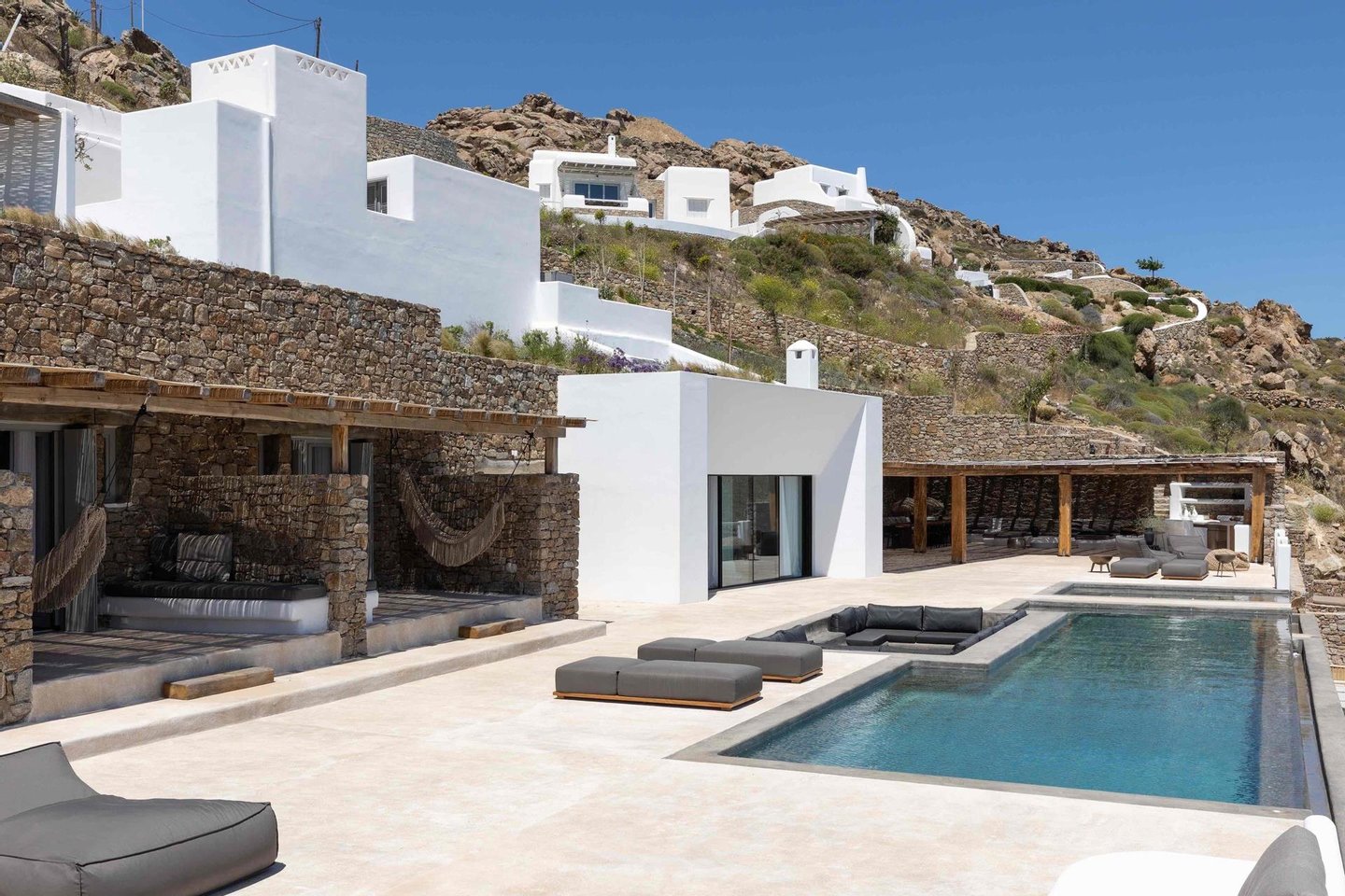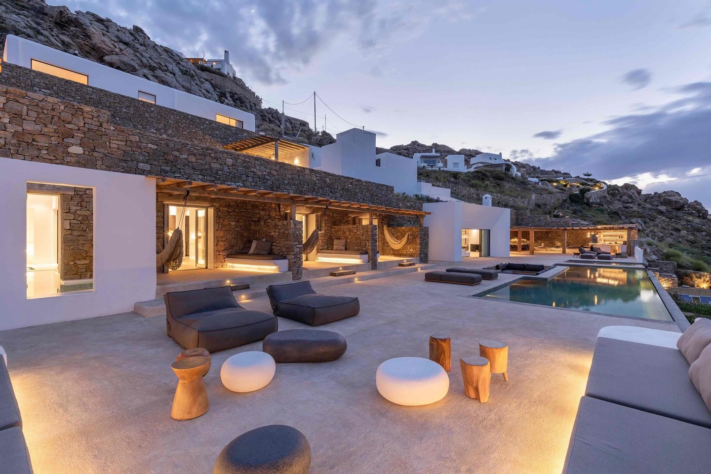 Auf einem 4.200 m² großen Grundstück in der renommierten Bucht Kalo Livadi bietet diese außergewöhnliche Immobilie großzügige Wohnbereiche, weltklasse Annehmlichkeiten und atemberaubende Panoramen. Die 750 m² große Villa erstreckt sich über drei Ebenen und ist so konzipiert, dass sie sowohl energetische Impulse vermittelt als auch vollständige Entspannung ermöglicht – eine perfekte Mischung aus Luxus, Komfort und Privatsphäre. Die Haupt-Suite umfasst 100 m² und bietet einen privaten Mini-Pool, freistehende Badewanne und Hamam, während sechs weitere en-suite Schlafzimmer Autonomie und Komfort für größere Gruppen gewährleisten. Gemeinschaftsbereiche umfassen ein geräumiges Wohnzimmer und Esszimmer, eine Hauptküche mit Personal-Küche, ein Büro und expansive Außenbereiche, ideal für Veranstaltungen.