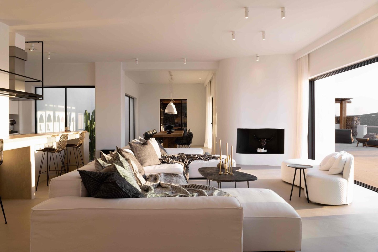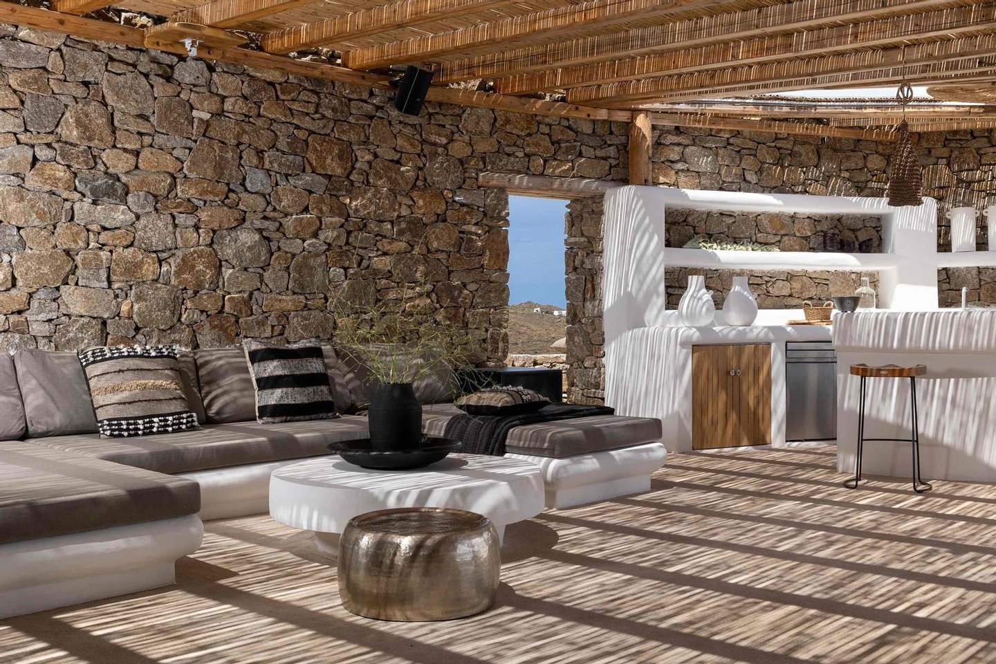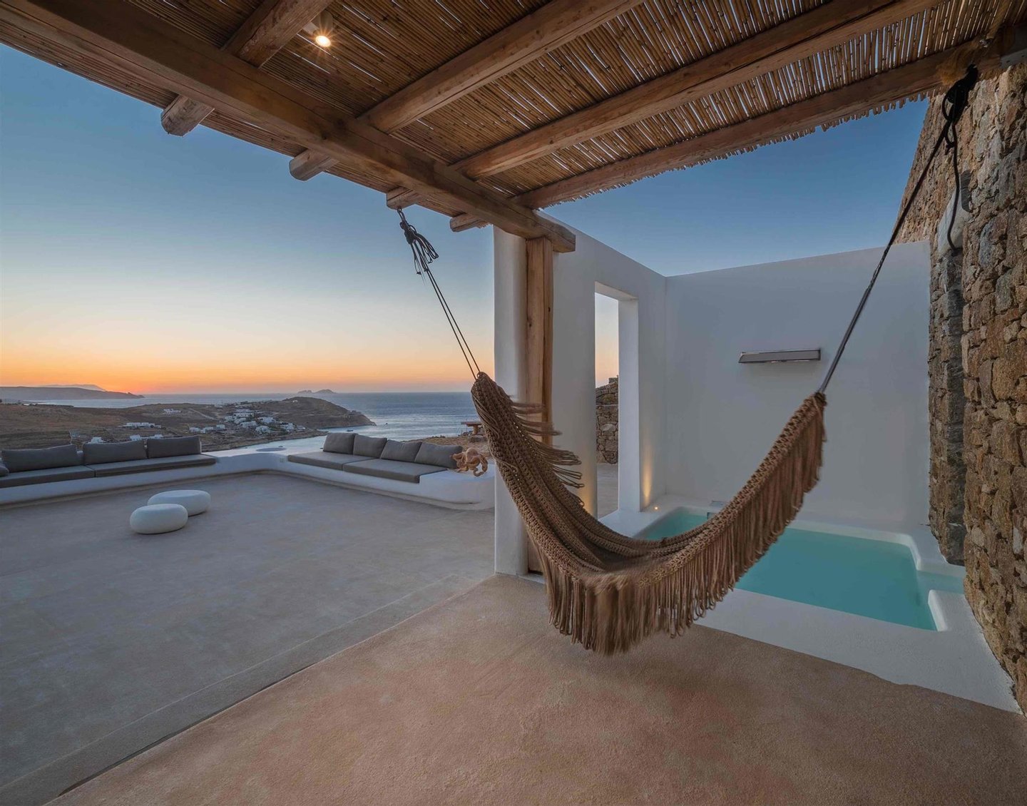 Auf einem 4.200 m² großen Grundstück in der renommierten Bucht Kalo Livadi bietet diese außergewöhnliche Immobilie großzügige Wohnbereiche, weltklasse Annehmlichkeiten und atemberaubende Panoramen. Die 750 m² große Villa erstreckt sich über drei Ebenen und ist so konzipiert, dass sie sowohl energetische Impulse vermittelt als auch vollständige Entspannung ermöglicht – eine perfekte Mischung aus Luxus, Komfort und Privatsphäre. Die Haupt-Suite umfasst 100 m² und bietet einen privaten Mini-Pool, freistehende Badewanne und Hamam, während sechs weitere en-suite Schlafzimmer Autonomie und Komfort für größere Gruppen gewährleisten. Gemeinschaftsbereiche umfassen ein geräumiges Wohnzimmer und Esszimmer, eine Hauptküche mit Personal-Küche, ein Büro und expansive Außenbereiche, ideal für Veranstaltungen.