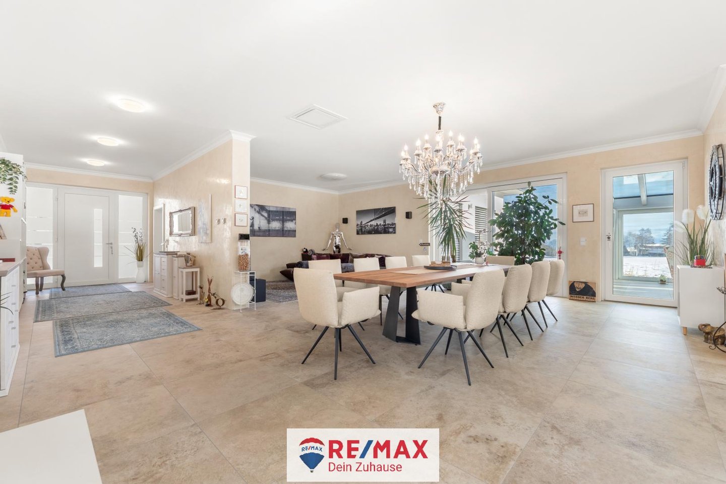 Im Mittelpunkt des Anwesens steht ein harmonisch aufeinander abgestimmtes Gebäudeensemble. Das moderne Landhaus, errichtet in den Jahren 2022 bis 2023, überzeugt durch hochwertige Bauweise, zeitlose Landhausarchitektur und zeitgemäße Haustechnik. Großzügige Glasflächen öffnen den Wohnraum zur umliegenden Landschaft und schaffen ein lichtdurchflutetes, offenes Wohnambiente. Der weitläufige Wohn und Essbereich mit exklusiver Küche und integriertem Wintergarten bietet eindrucksvolle Ausblicke in die Natur. Beheizt wird das Landhaus über eine moderne Luftwärmepumpe in Kombination mit Fußbodenheizung. Klimatisierung, moderne Dämmung, Photovoltaikanlage sowie eine vorbereitete Notstromversorgung unterstreichen den hohen Anspruch an Komfort und Energieeffizienz.