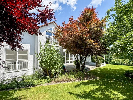 Dieses individuell geplante Architektenhaus aus dem Jahr 1995 überzeugt durch klare Architektur, großzügige Proportionen und eine hochwertige, durchgehend gepflegte Ausstattung. Auf rund 300 m² Wohnfläche entsteht ein Wohnkonzept, das Raum,
