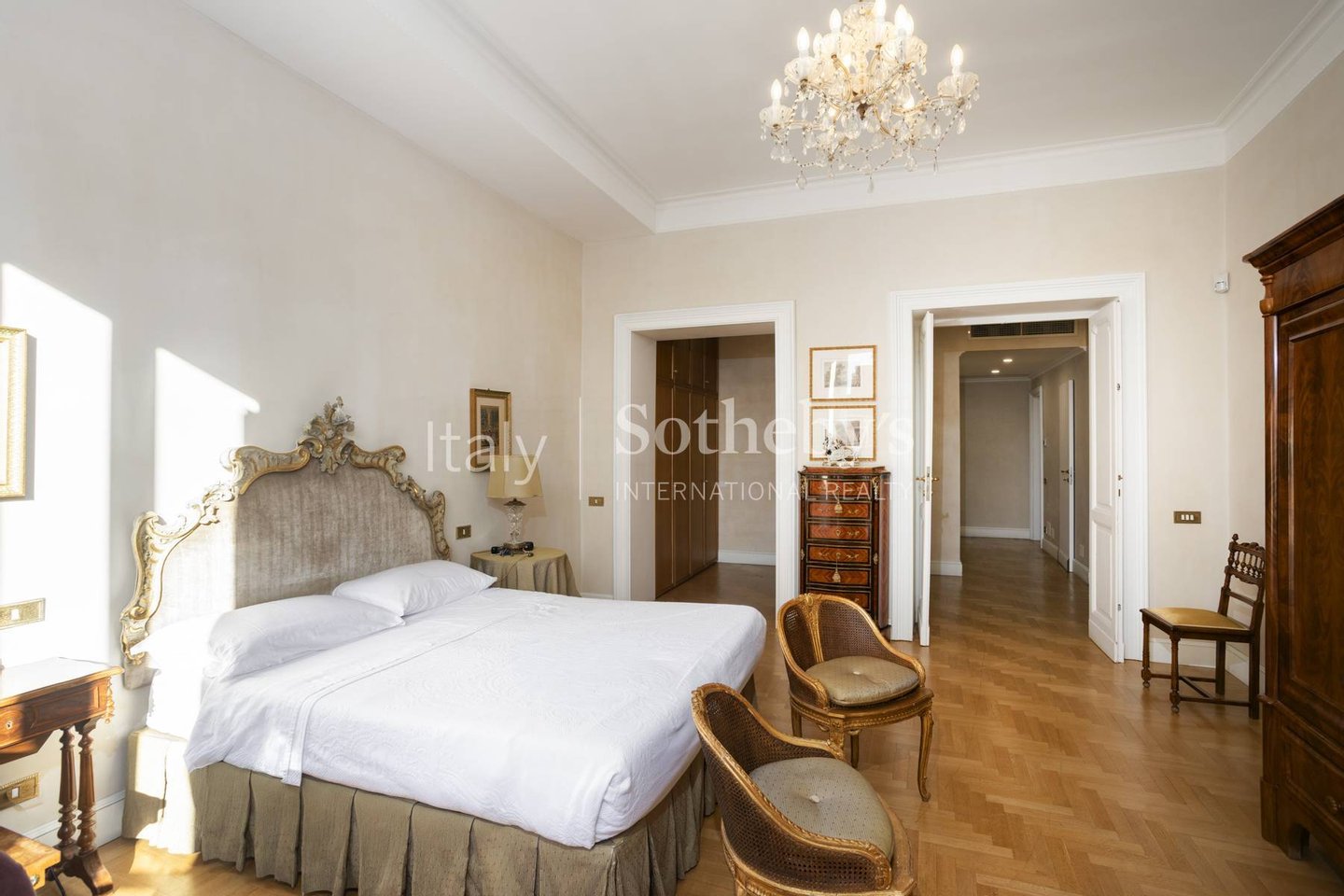 Die Immobilie bietet spektakuläre, luftige Ausblicke, unterstrichen durch hohe Decken und große Fenster, die den ganzen Tag über für außergewöhnliches Licht sorgen. Der gut proportionierte und harmonische Grundriss bietet große Flexibilität bei der Raumgestaltung, wertet jeden Bereich auf und ermöglicht zukünftige individuelle Anpassungen. Eine bedeutende, von den derzeitigen Eigentümern durchgeführte Renovierung hat die Qualität der Immobilie zusätzlich gesteigert, ohne die Eleganz des historischen Charmes zu beeinträchtigen. Hochwertige Materialien, Parkettböden und edle Marmoroberflächen schaffen ein perfektes Gleichgewicht zwischen historischem Flair und modernem Wohnkomfort.