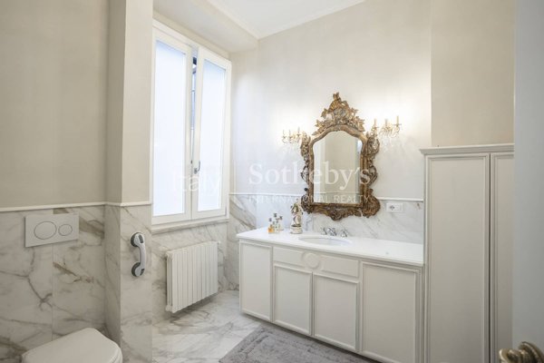 Die Immobilie bietet spektakuläre, luftige Ausblicke, unterstrichen durch hohe Decken und große Fenster, die den ganzen Tag über für außergewöhnliches Licht sorgen. Der gut proportionierte und harmonische Grundriss bietet große Flexibilität bei der Raumgestaltung, wertet jeden Bereich auf und ermöglicht zukünftige individuelle Anpassungen. Eine bedeutende, von den derzeitigen Eigentümern durchgeführte Renovierung hat die Qualität der Immobilie zusätzlich gesteigert, ohne die Eleganz des historischen Charmes zu beeinträchtigen. Hochwertige Materialien, Parkettböden und edle Marmoroberflächen schaffen ein perfektes Gleichgewicht zwischen historischem Flair und modernem Wohnkomfort.