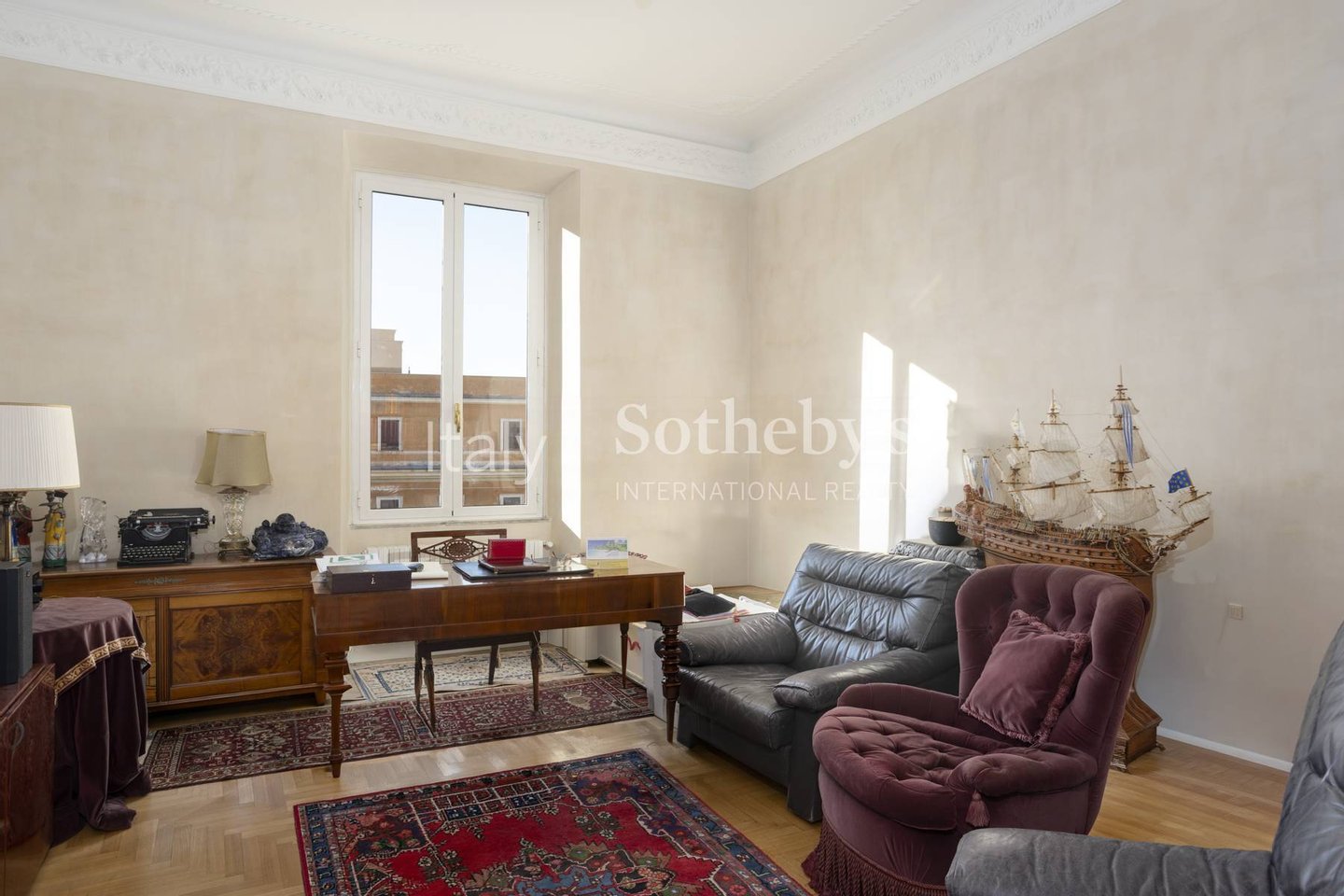 Im Zentrum Roms, nur wenige Schritte vom Vatikan entfernt, befindet sich diese prächtige, helle und panoramische Wohnung im vierten Stock eines charmanten historischen Gebäudes, das elegant mit einem Aufzug ausgestattet ist.