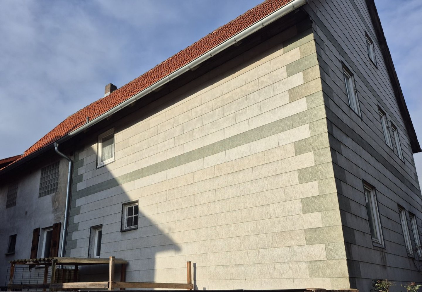 Das Wohnhaus bietet ca. 200 m² Wohnfläche zuzüglich weiterer Ausbau- und Nutzreserven und ist unterkellert. Die Immobilie befindet sich insgesamt in sanierungsbedürftigem Zustand, stellt jedoch eine solide Basis für eine umfassende Modernisierung dar und richtet sich insbesondere an Liebhaber historischer Bausubstanz, Handwerker oder Investoren mit Blick für Potenzial.