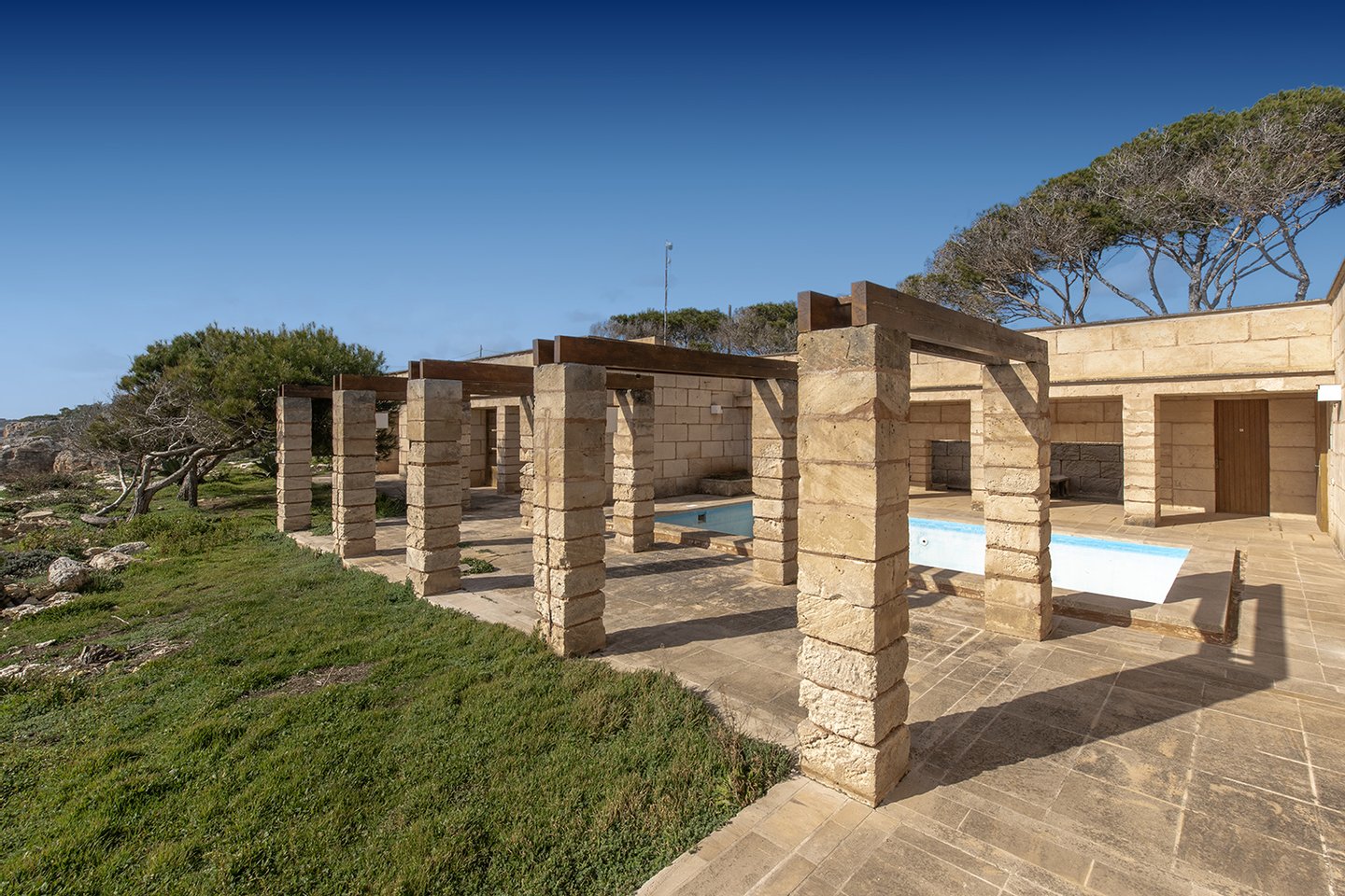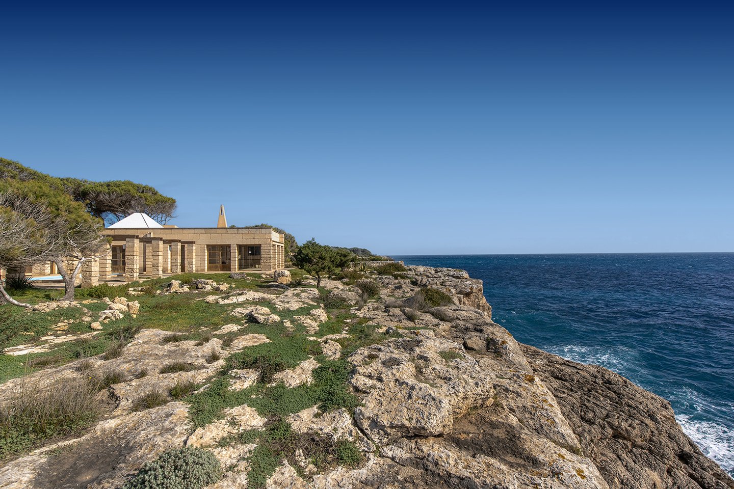 Der Außenbereich bietet genügend Platz, um eine echte Oase zu schaffen. Geplant ist ein ca. 9x5m großer Infinitypool, sodass das Gefühl entsteht, dass dieser nahtlos in das Meer übergeht. Zahlreiche Terrassen bieten verschiedene Rückzugsorte, um das Meeresrauschen zu genießen. Die privilegierte Lage in erster Meereslinie garantiert absolute Privatsphäre sowie einen unverbaubaren Blick auf das Mittelmeer.