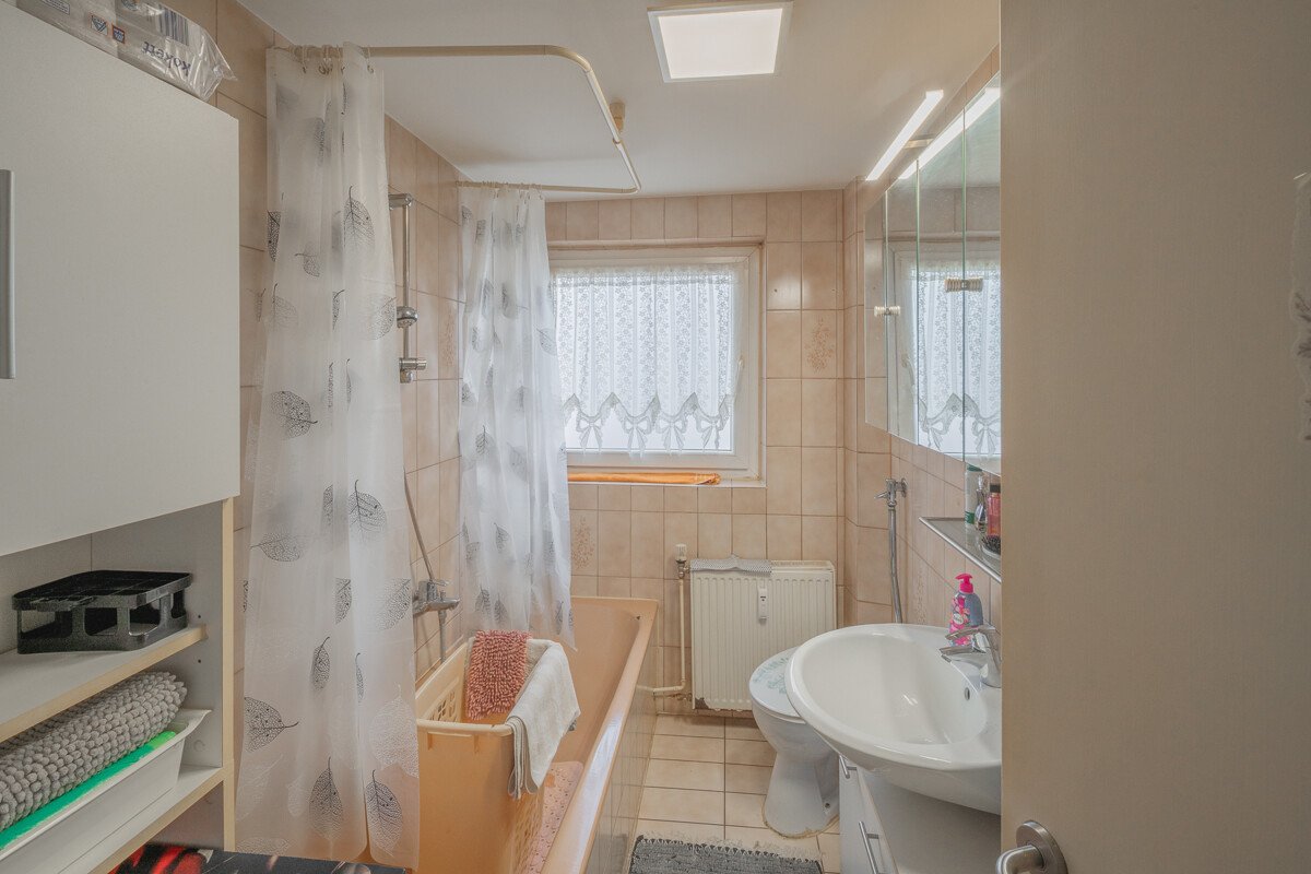 Zudem verfügt die Wohnung über einen Keller und einen Stellplatz, was zusätzlichen Stauraum und Komfort bietet. Ein Bad mit Wanne rundet das Angebot ab.
