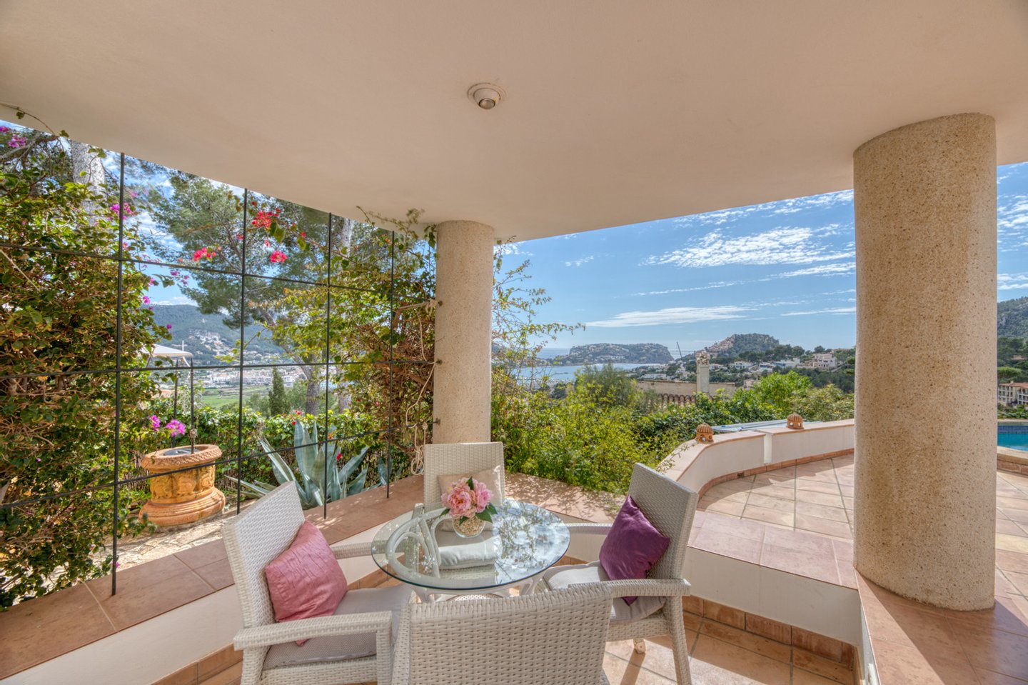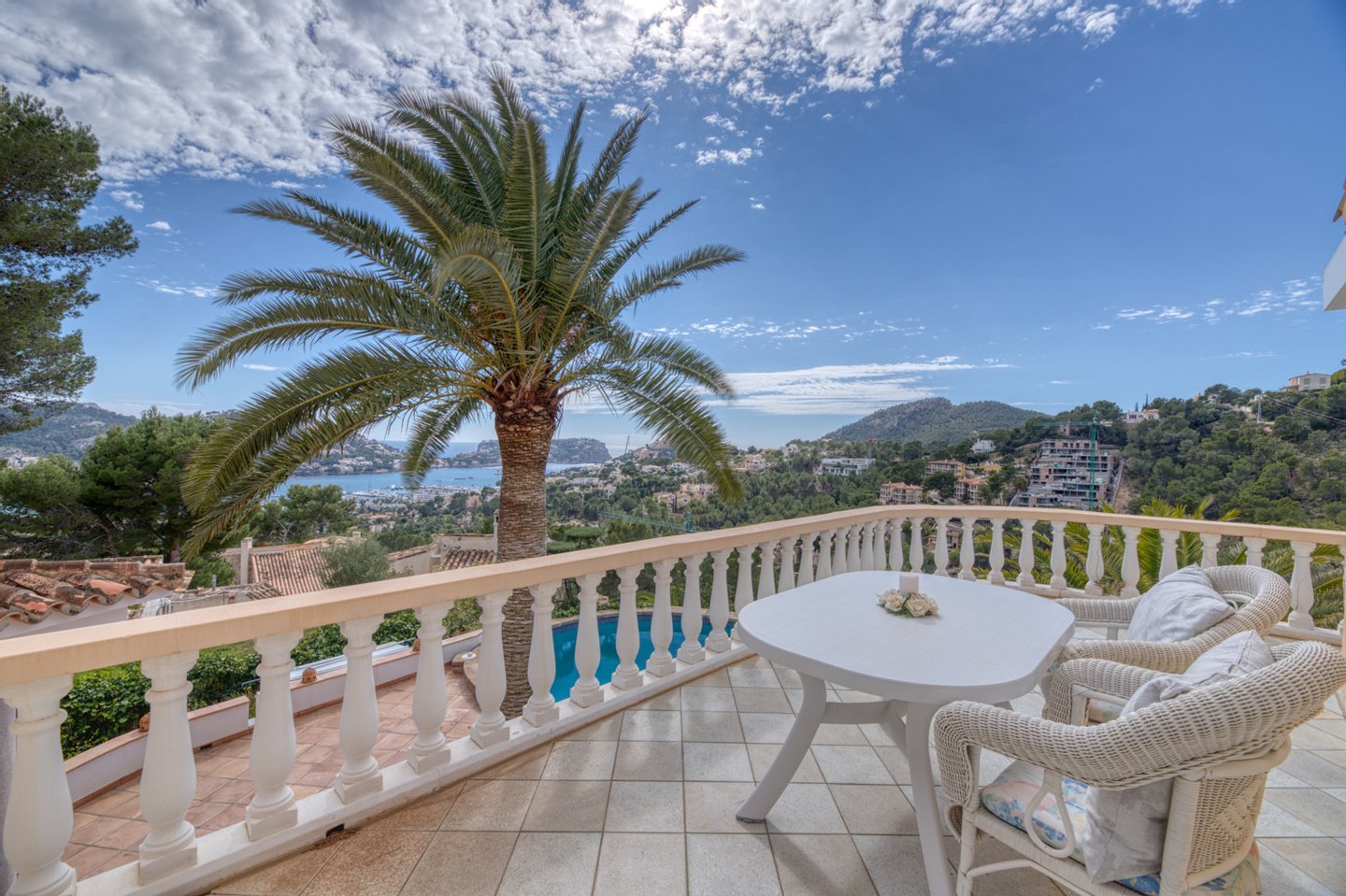 Eine besondere Eigenschaft der Villa ist ihre erhöhte Lage, die einen traumhaften Blick über den gesamten Hafen von Port Andratx und auf das Meer bietet.