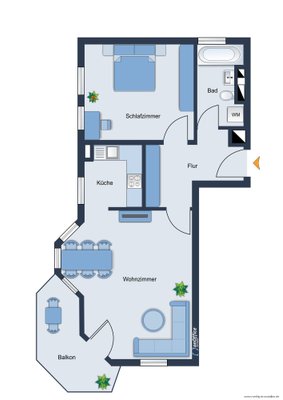 Über eine bodentiefe Tür gelangen Sie auf den ca. 9 m² großen Süd-/Westbalkon. Dank seiner vorteilhaften Ausrichtung begleitet Sie die Sonne über den Tag hinweg und macht den Balkon zu einem wunderbaren Rückzugsort im Freien. Ob gemütliche Sitzecke,