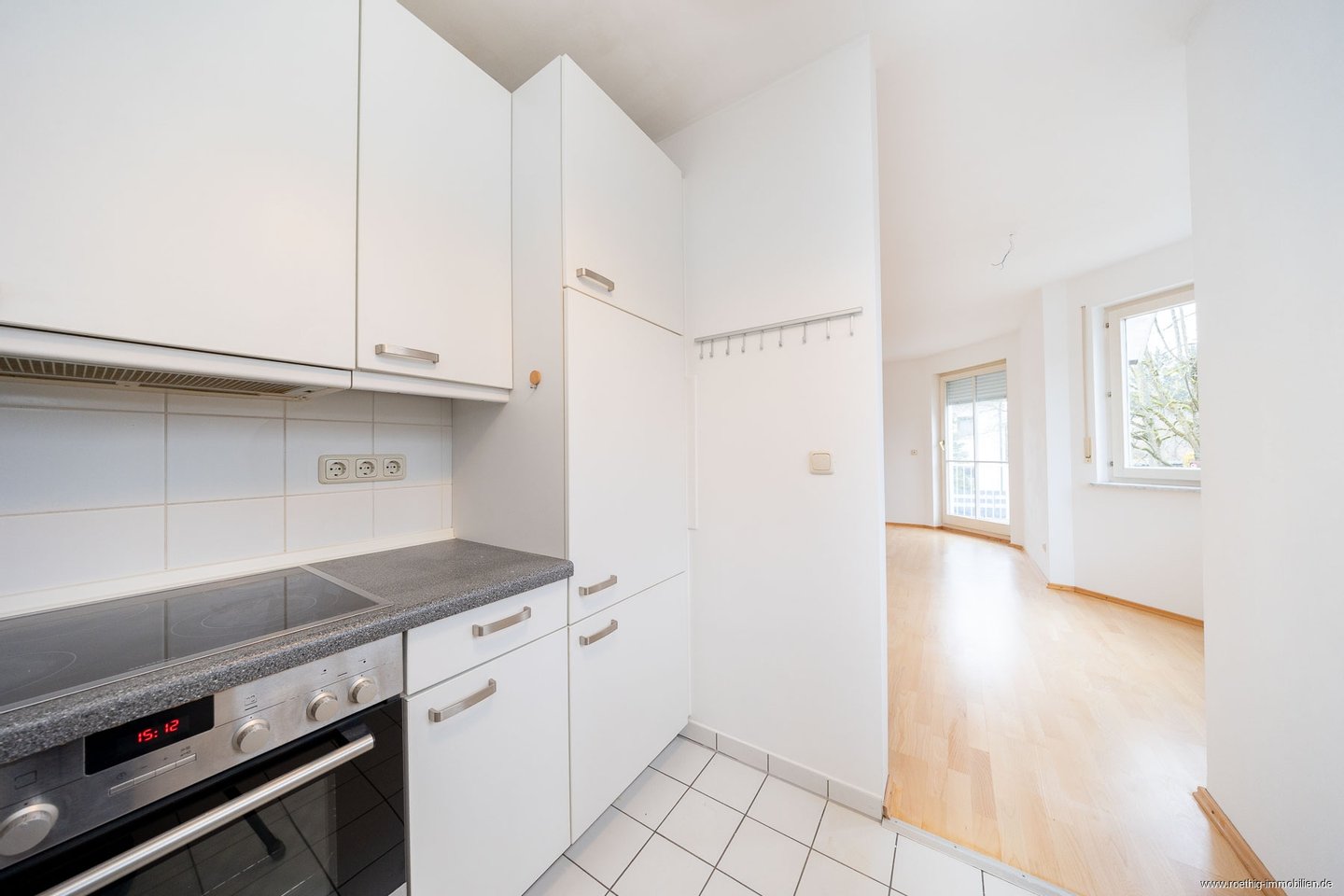 Die halboffene Einbauküche integriert sich stimmig in den Wohnbereich und verbindet Offenheit mit Funktionalität. Neben der vorhandenen Ausstattung mit Backofen, Dunstabzug und Kühlschrank schafft das große Westfenster ein lichtdurchflutetes Ambiente. Gleichzeitig eröffnet sich Ihnen ausreichend Gestaltungsspielraum, um Ihre persönliche Traumküche ganz nach eigenen Vorstellungen zu verwirklichen.