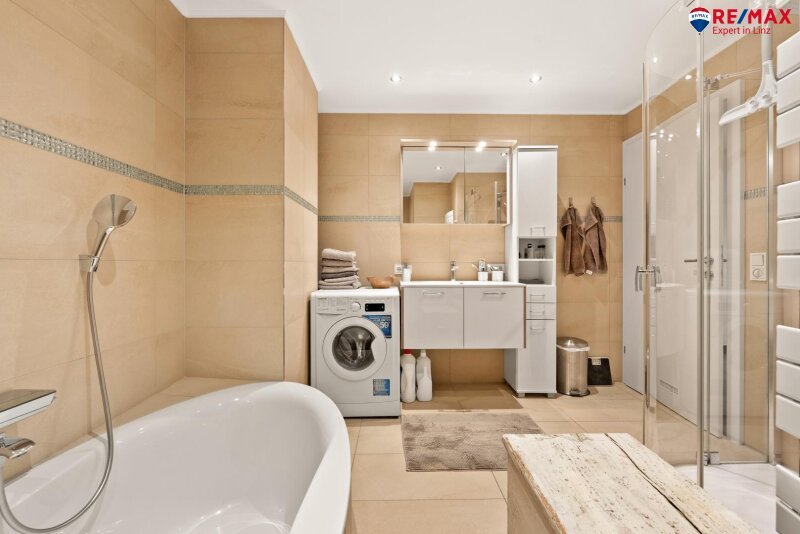 Nur wenige Kilometer vom Zentrum entfernt befindet sich diese stilvolle 3-Zimmer-Wohnung im 1. Obergeschoss, die mit ihrer durchdachten Raumaufteilung, ihrer hochwertigen Ausstattung und ihrem besonderen Wohngefühl überzeugt.