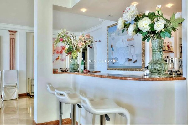 Selten! Wunderschöne Wohnung im 7. Stock eines sehr schönen Gebäudes mit Hausmeister, Fläche 270 m² (Carrez-Gesetz + 15 m² Dienstboten-/Besprechungszimmer) und 48 m² Terrasse, mit 3 bestehenden Zugängen und einer vollständig eigenständigen Wohnung: Eingang, prächtiges Wohnzimmer mit Barbereich von 95 m² mit herrlichem Meerblick und Terrasse, Küche mit Ausstattung, 4 Schlafzimmer, 2 Badezimmer, 2 WC, Möglichkeit, ein kleines Wohnzimmer in ein 5. Schlafzimmer umzuwandeln, Küche. 3 Garagen und Keller vervollständigen dieses Angebot. Honorare burden des Verkäufers. Energieeffizienzklasse D, Klima Klasse D. Die Informationen zu den Risiken, denen diese Immobilie ausgesetzt ist, finden Sie auf der Website Géorisques. Ihr Berater Noireaux & Guevara: Geschäftsführer - Olivier Noireaux Karte T 036 016 Rcp Galian