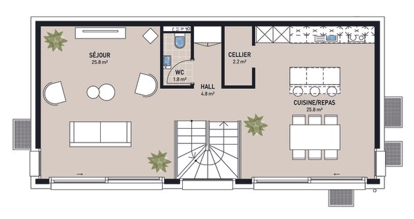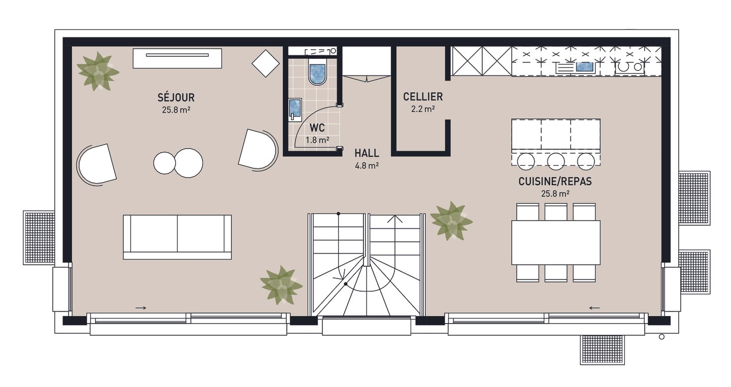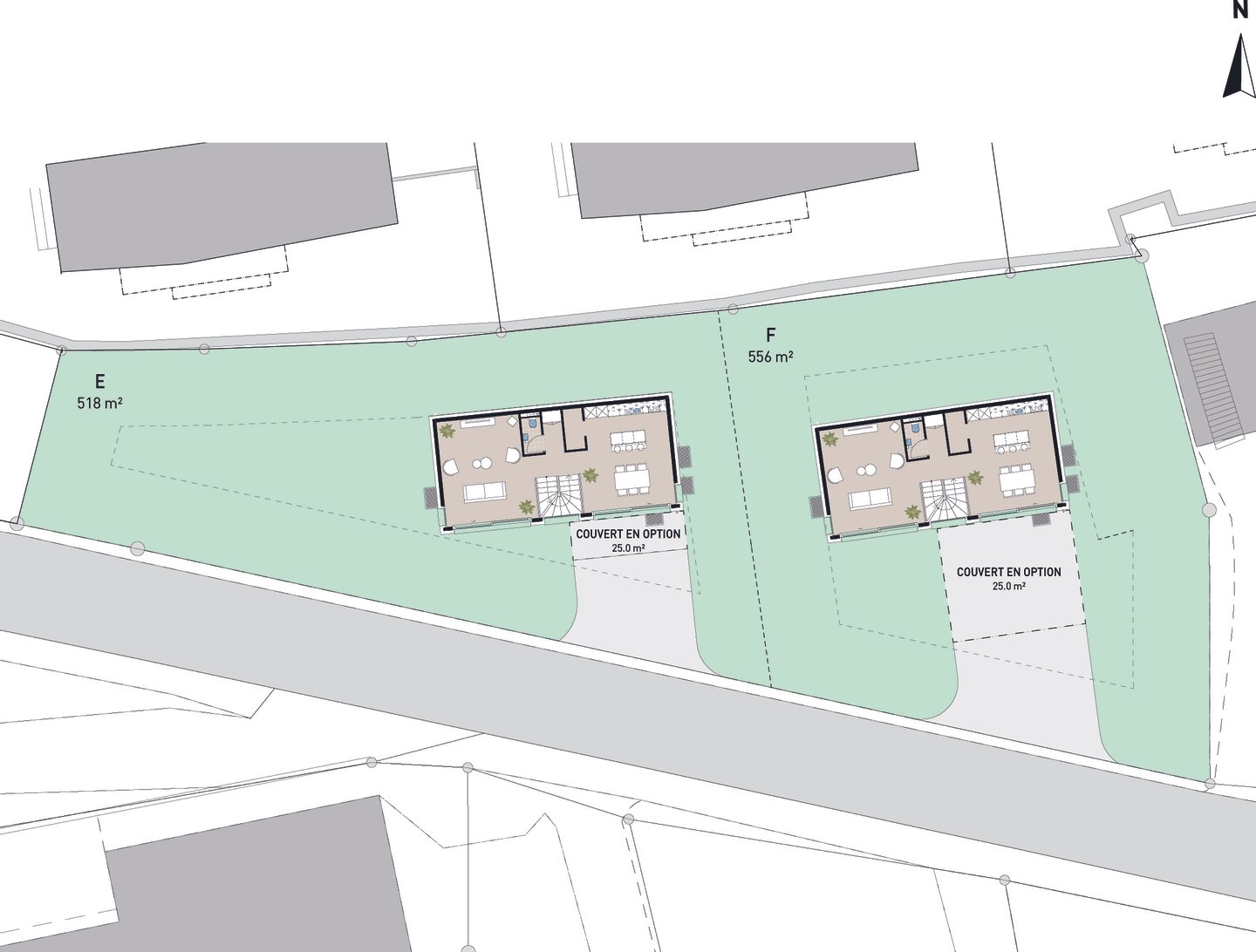 Genießen Sie ein freistehendes Villenprojekt, das modernen Komfort, Energieeffizienz und anpassbare Oberflächen auf einem Grundstück von 518 m² oder 556 m² kombiniert, vollständig ausgestattet und in einer Bauzone gelegen.