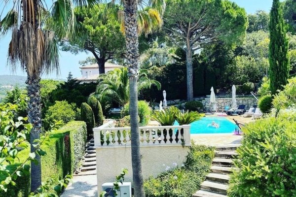 Diese geräumige provenzalische Villa befindet sich in einem ruhigen, sicheren Privatgebiet und nur wenige Gehminuten vom Strand und dem Dorf entfernt und bietet einen Panoramablick auf die Hügel.