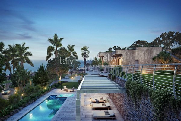 In einer exklusiven und panoramischen Gegend von Sanremo gelegen, bietet diese im Bau befindliche Villa einen atemberaubenden Blick auf den Golf und einen privaten Pool. Die Immobilie, deren Fertigstellung für Juni 2025