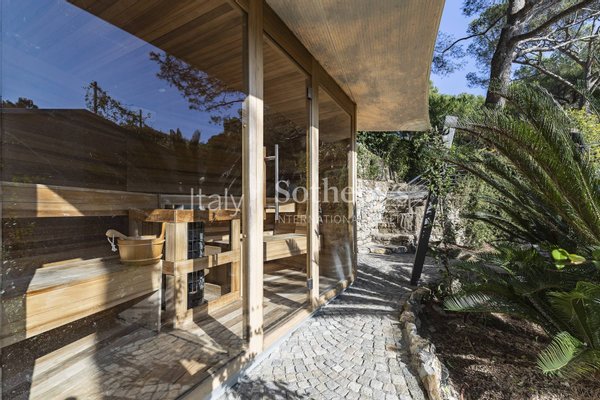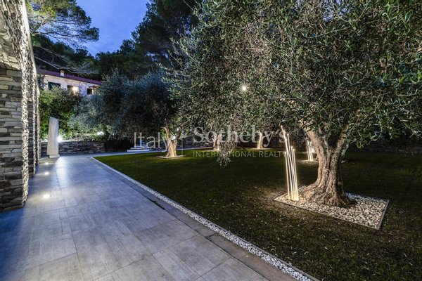 The villa embodies the best of contemporary design, with large and bright spaces that combine functionality and style. The kitchen, tastefully furnished and equipped with the latest appliances, opens onto a refined living room, ideal for moments of conviviality. Outside, an open-air kitchen invites you to enjoy the mild climate of the Riviera between dinners at sunset and days of relaxation. The private garden is an oasis of peace, enriched by centuries-old olive trees and fruit trees, while the equipped roof terrace of 200 mq (2,150 sq ft) offers a perfect space to relax while admiring the view of the sea and the hills. Designed to offer maximum comfort, the villa offers exclusive services such as an outdoor sauna, Turkish bath, hot tub and gym. An advanced Smart Home system guarantees intuitive management of lights, temperature and security, while a cutting-edge surveillance system ensures privacy and tranquility.